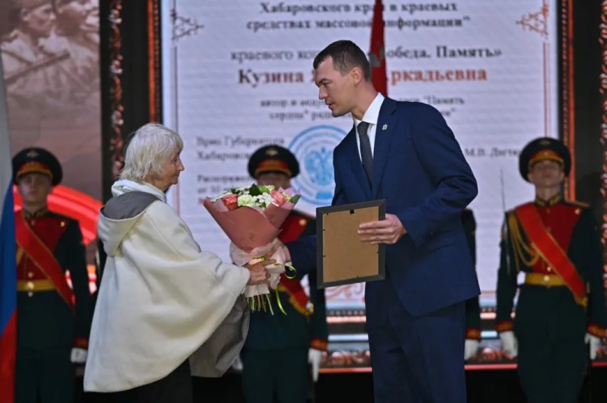 Автором лучшего цикла материалов об участниках Великой Отечественной войны и тружениках тыла – жителях Хабаровского края стала заместитель главного редактора телеканала "6 ТВ" Виктория Осипова. На втором месте – внештатный автор газеты "Приамурские ведомости" Алексей Елаш. На третьем – автор и ведущая радиопередачи "Память сердца" радиоканала "Радио России" Янина Кузина. Среди муниципальных СМИ победу одержала корреспондент газеты "Бикинский вестник" Наталья Легачева. На втором месте - заведующая отделом по выпуску газеты "Восход Ванино" Наталья Тимченко. Третье место у редактора общественно-политического отдела газеты "Вяземские вести" Анастасии Шубиной.
