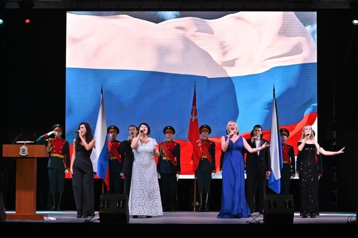 Краевое торжественное собрание завершилось концертной программой. Перед зрителями выступили коллективы Краевого Дома Дружбы "Русь", музыкальный проект "Отражение", ансамбль Хабаровской краевой филармонии "Дальний Восток" и ансамбль песни и пляски ВВО.
