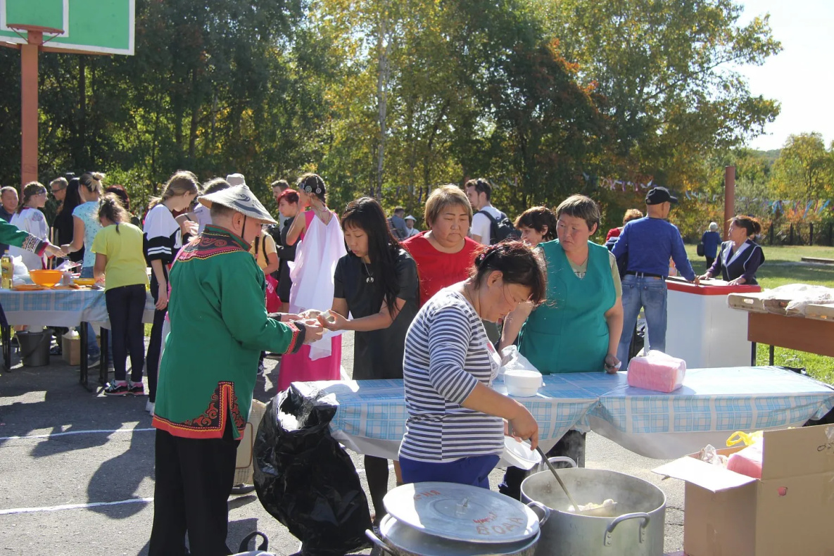После открытия хозяева праздника организовали массовое угощение амурской ухой. Благо осенняя кета пошла не плохо, и у местных нанайцев появились уловы. Также любой желающий смог попробовать приготовить традиционный десерт аборигенов Хабаровского края – солима. Его делают из измельчённых лепёшек, ягод, сахара и немного растительного масла.