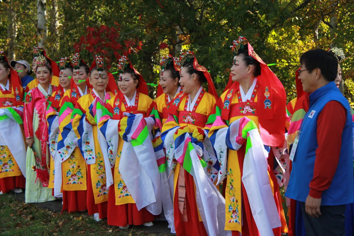 Традиционные песнопения и пляски с бубнами дальневосточных аборигенов на сцене культурно-досугового центра Сикачи-Аляна перемежались с песнями на идише, татарском, армянскими танцами и раскатистыми русскими романсами и спеваниями на украинском. Кореянки из Ансана, не смотря на приличный возраст большинства участниц самодеятельного коллектива, показали удивительную грацию.