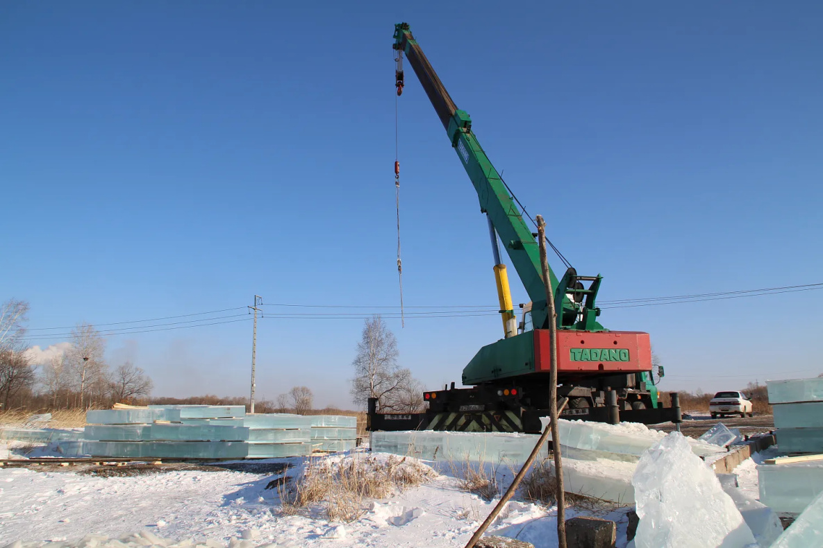 Обычно работа выстраивается по четкому плану: сначала заготовители наносят разметку с помощью деревянной рамы, затем с санями, на которых закреплена пила, прорезают кубы льда. На заключительном этапе проталкивают глыбу по протоке и краном вытаскивают ее наружу.
