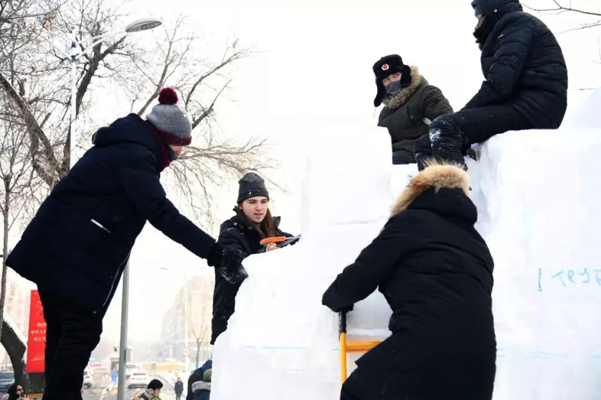 Прибыв в Харбин наперевес с тяжелыми инструментами и сменной одеждой, ребята приступили к работе. Работала команда на больших снежных кубах (трехметровых), как профессионалы, новичкам же предоставляют малые (метровые). За 3 дня студентам предстояло создать скульптуру.