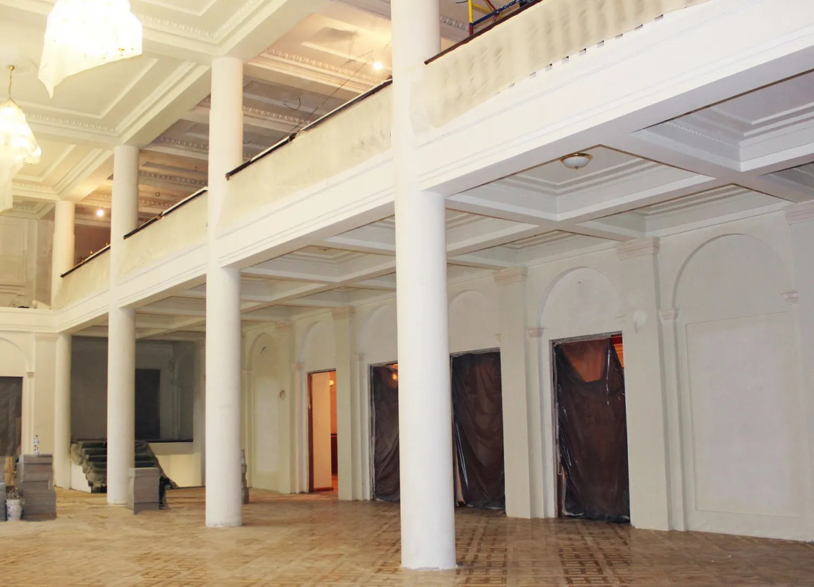 Специалисты ВСК проводят работы в точном соответствии требованиям закона «Об объектах культурного наследия народов Российской Федерации». На первом этапе военные строители выполнили гидроизоляцию исторических фундаментов и стен, полностью восстановили фойе, вестибюль, зрительный зал, два гардероба, частично фасад входной группы.