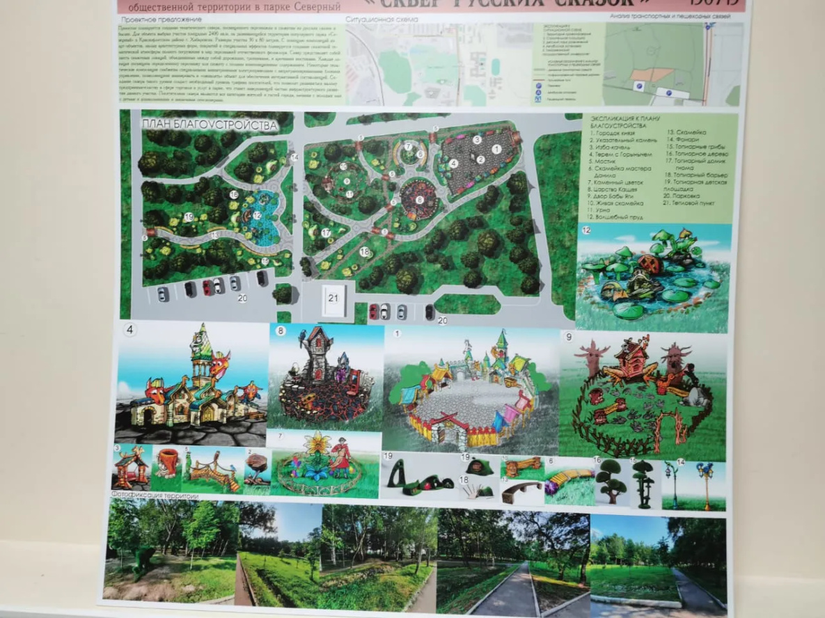 - Идея родилась после общения с местными жителями, родителями и детьми, гулявшим по территории парка. Они считают необходимым создание общедоступного пространства, схожего с Диснейлендом, - рассказал главный художник Хабаровска Сергей Пеньков. - Могу с уверенностью утверждать – подобного сквера в России нет! Группа местных художников создаст шесть зон, продуманных до мелочей, с разными героями былин и сказок. Планируем использовать прочные материалы, что позволит избежать урона со стороны вандалов. Сооружения также должны быть оснащены светодиодным оформлением.