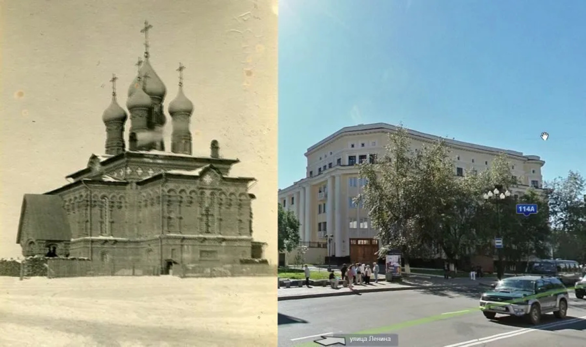 - Известно, что в 1914 году в Хабаровске было всего три каменных православных храма, среди них Алексеевский Градо-Хабаровский. Казалось, он пропал бесследно: не осталось чертежей, планов, снимков и даже информации о местоположении, - говорит Евгений Галёса. - Спустя сто лет, инициативный хабаровчанин Алексей Колесников, начал «любительское» расследование. Определив границы площади, используя «План г. Хабаровска» 1911 года, и сопоставив редкие исторические фотографии и спутниковые снимки, он пришел к сенсационному выводу: «обезглавленная» церковь дожила до наших дней, став частью северного корпуса здания военного штаба.