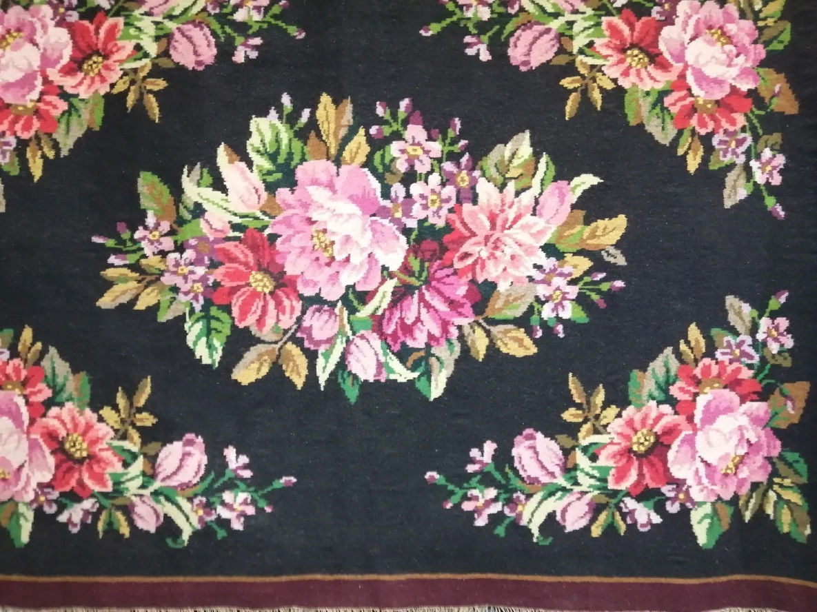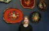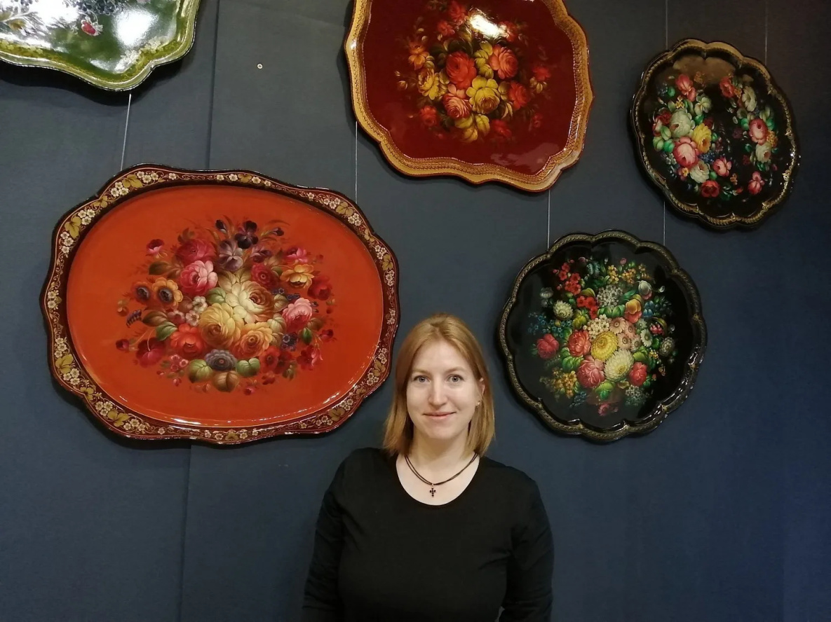 На выставке курские ковры – в классическом исполнении, когда использовался преимущественно черный цвет и красный. В 50-е годы прошлого столетия художники меняли фон, писали авторские цветы. И, конечно, яркие павловопосадские платки, жостовские подносы, а их двенадцать, и все разные – яркие, буквально звенящие!