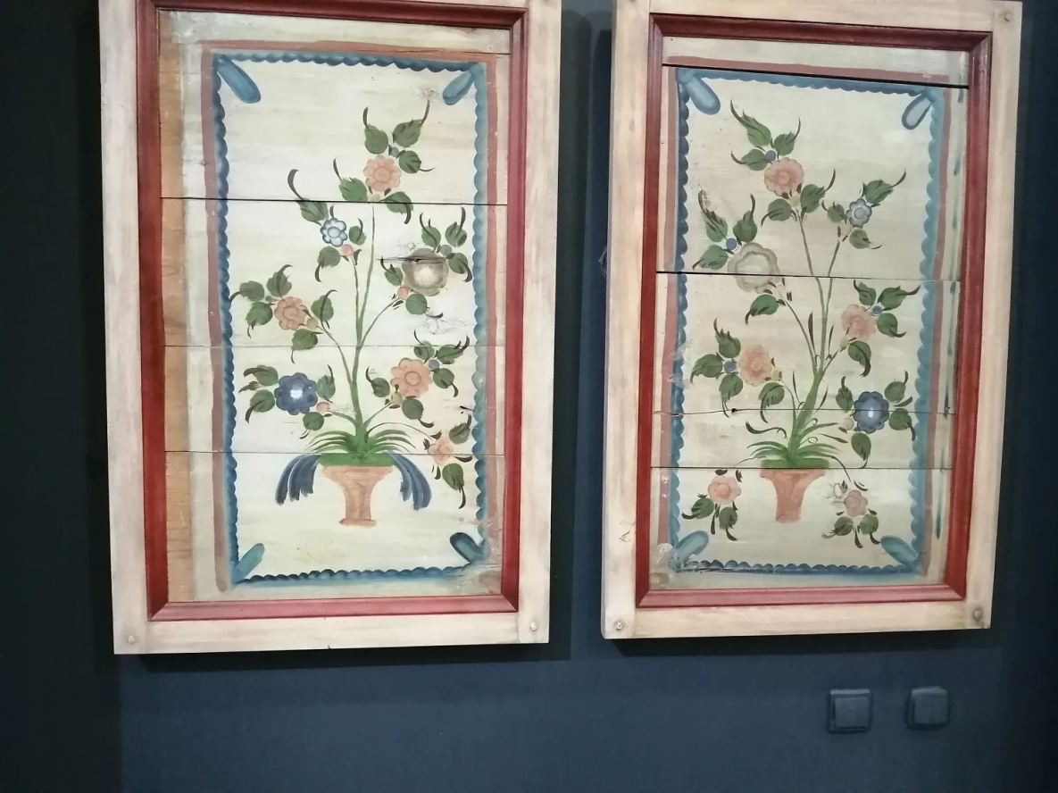 На выставке представлено крестьянское искусство, из которого и выросли промыслы. К примеру, можно увидеть, часть интерьера дома, расписанного незамысловатым растительным орнаментом. Но представить только избу, где все комнаты внутри в цветах, и даже потолок! Так крестьяне видели свой быт.