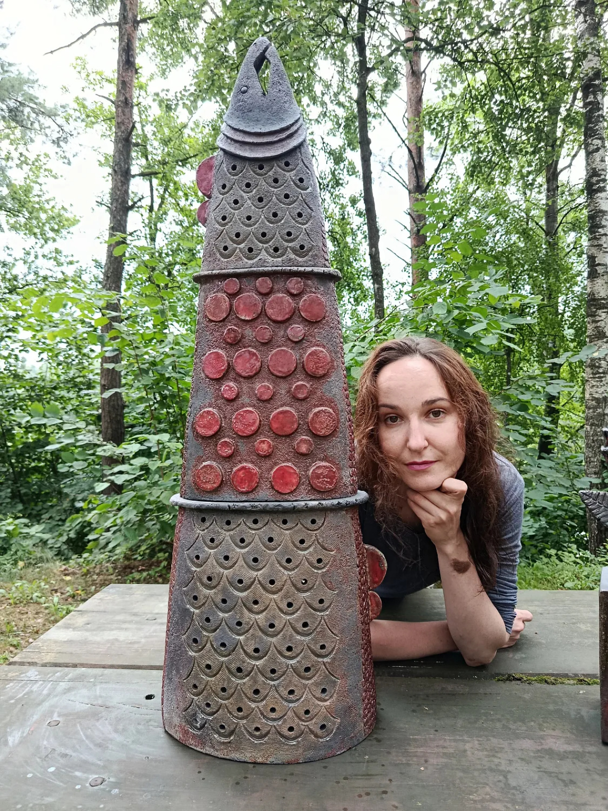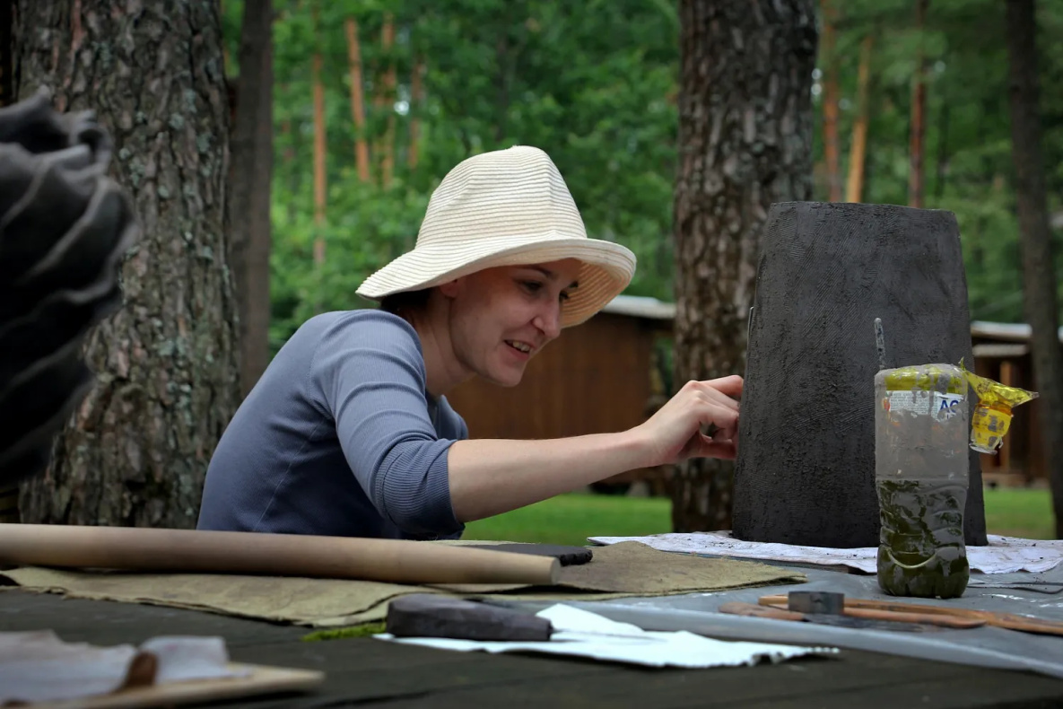 На пленэрах в Белоруссии, куда она ездит каждый год, они обжигают составные части будущего изделия, потому что там пленэр с условием, что ты должен обязательно сделать работу высотой больше метра. Такое правило!