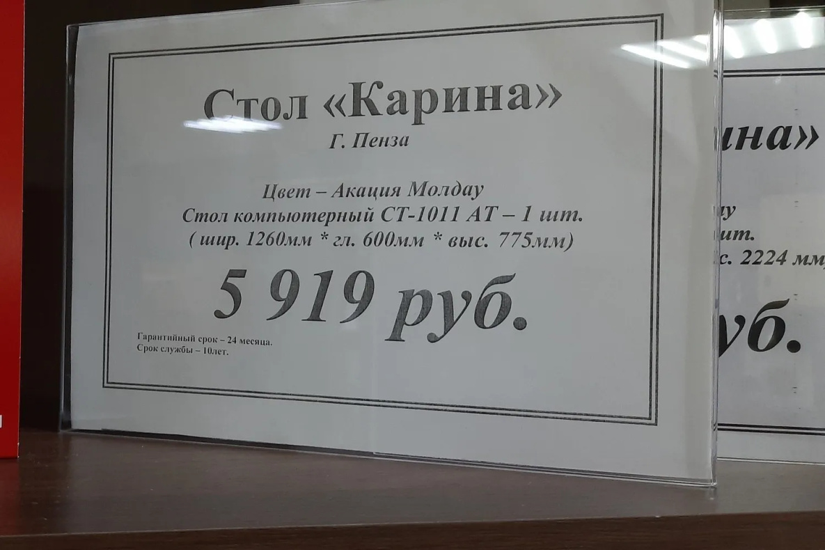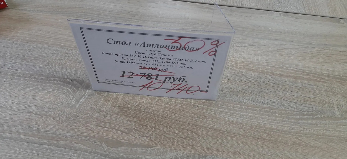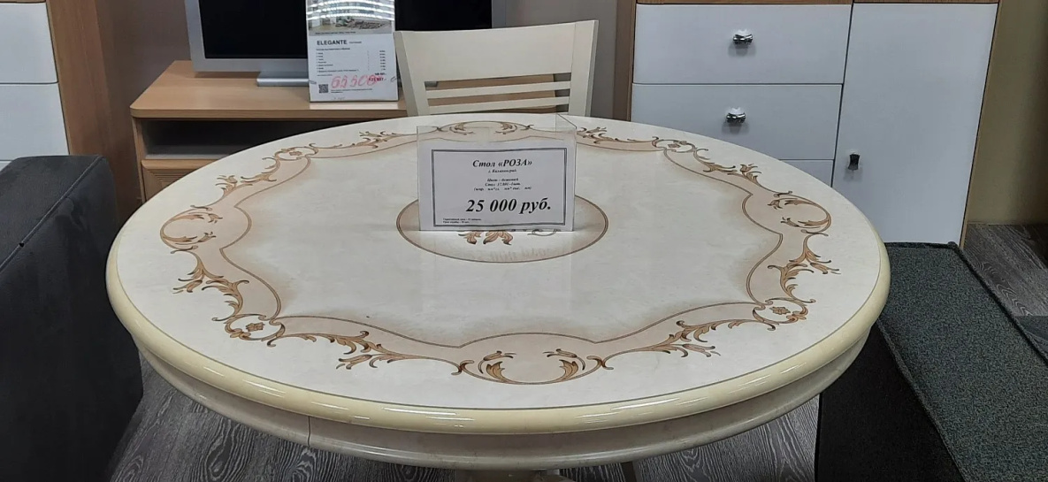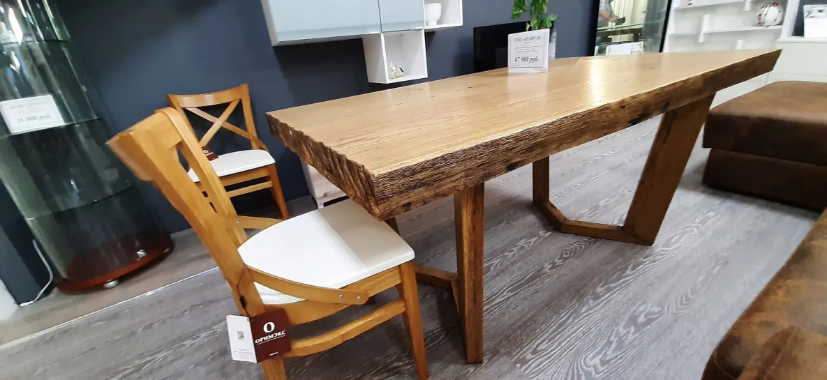Корреспонденту попался обеденный стол из дуба всего за 25 тысяч рублей. Продавец объяснил, что на столешнице есть скол, вот и пришлось уценить. Обычная же цена подобных изделий в диапазоне от 50 до 70 тысяч рублей.