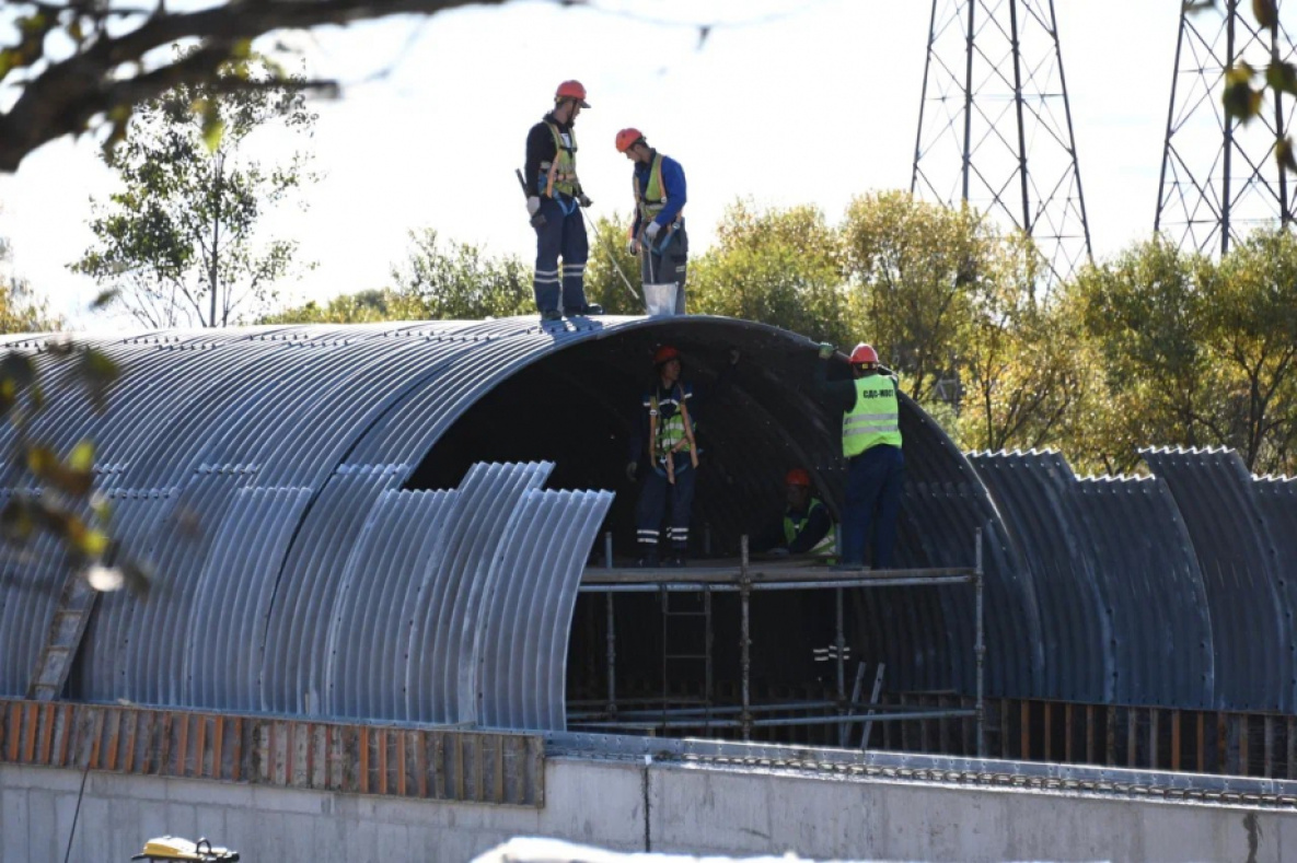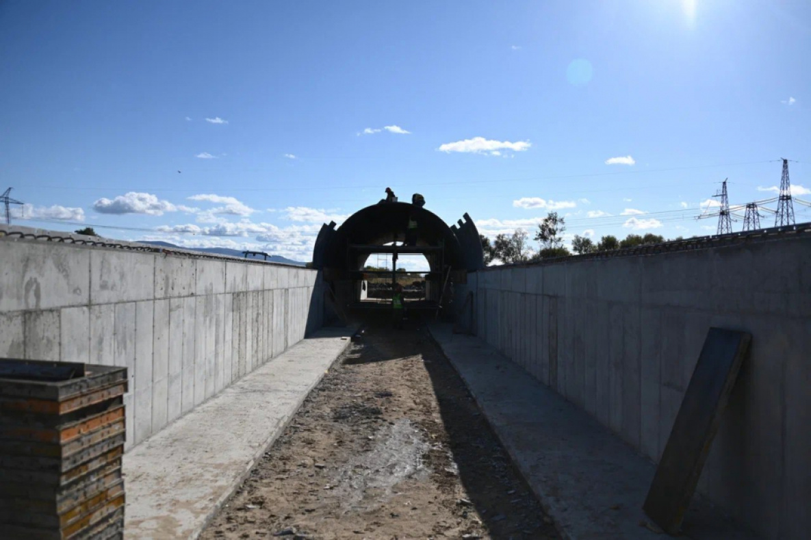 Общая протяженность новой автодороги составит более четырех километров. Работы идут на четырех участках. Выполнено погружение свай для основания моста на 24-м и 28-м пикетах: всего забито более 850 свай, ведется устройство железобетонного ростверка и отсыпка насыпи земляного полотна из скальной породы. На 24-м пикете ведется сборка водопропускной трубы из гофрированной стали. Секции соединяются болтами, после чего проводится гидроизоляция и устройство защитной засыпки. Ведутся укрепительные работы входов и выходов.