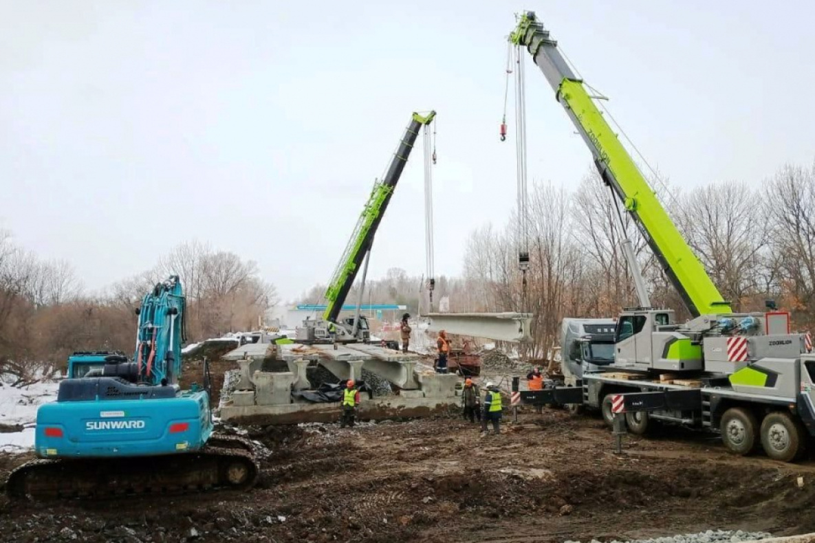 По информации пресс-службы администрации Хабаровского района, объектом занимается компания «Благострой». К настоящему времени подрядчик уже установил опорные части балок пролётных строений и смонтировал предварительно натяжённые железобетонные балки. Сейчас рабочие занимаются бетонированием шкафных стенок опор.