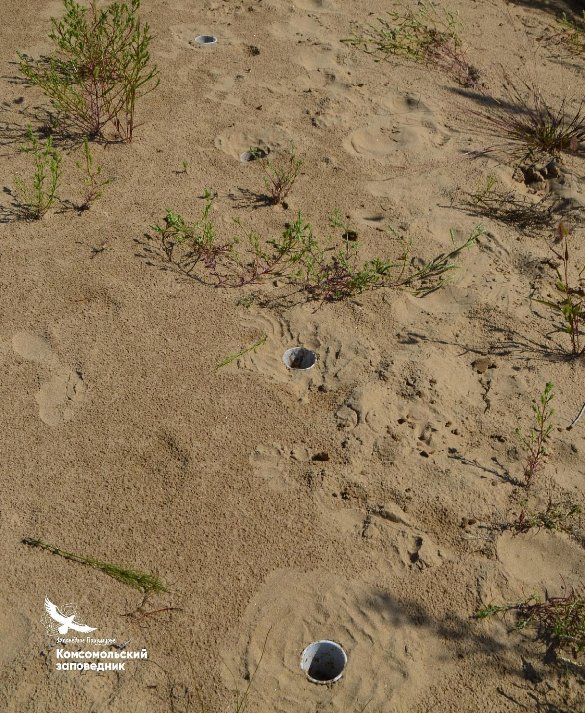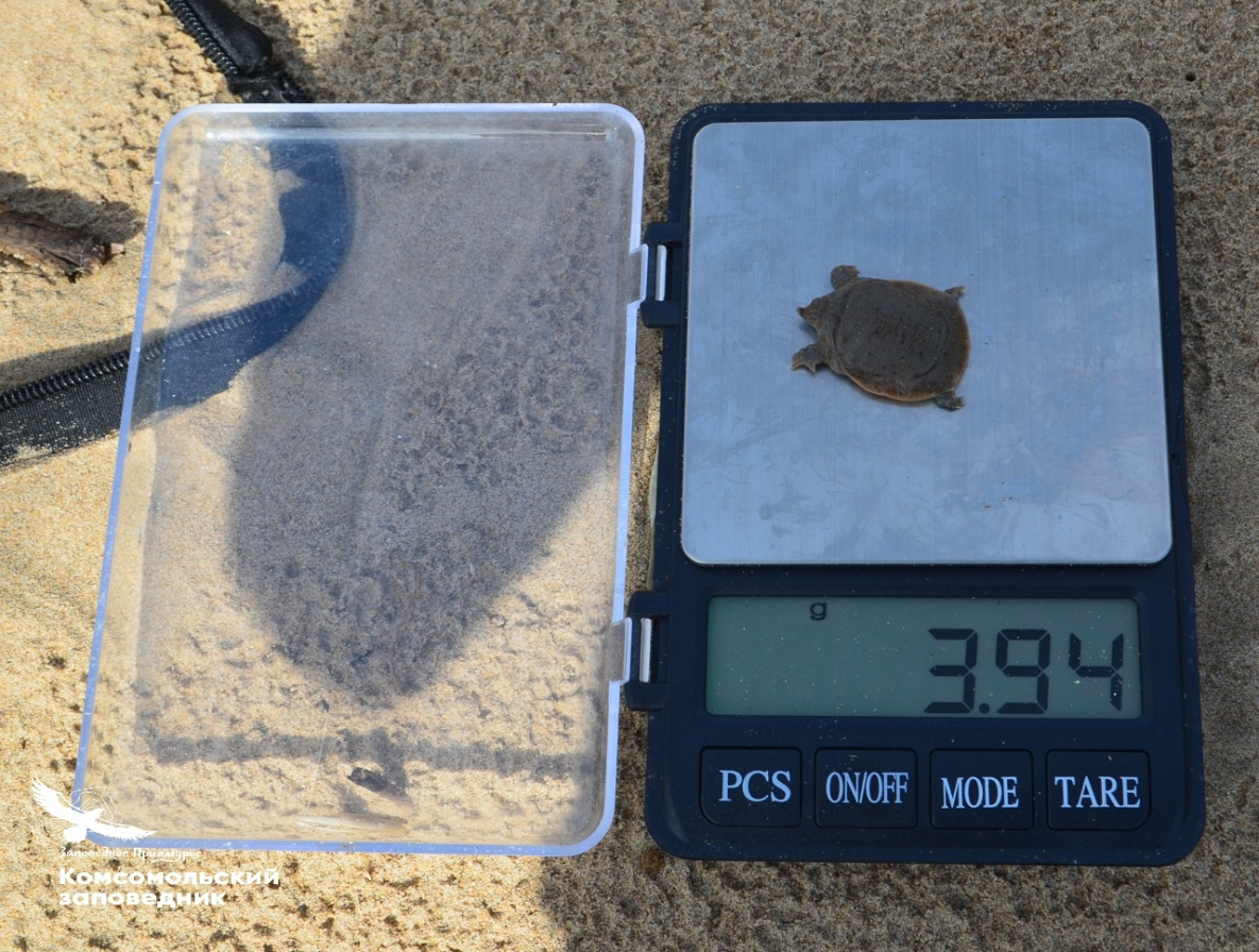 Помимо следов хищника обнаружились и другие находки – еще две кладки яиц черепахи, откуда как раз вылуплялись черепашата и спешили к воде. Для их изучения ученый применил новую методику – поимку в ловчие стаканчики, которые были вкопаны вдоль кромки воды. Перед тем как отпустить попавшихся рептилий, герпетолог измерил сеголеток и взвесил. Как уточнили в ФГБУ «Заповедное Приамурье», эти данные необходимы для будущих научных работ о дальневосточной черепахе.