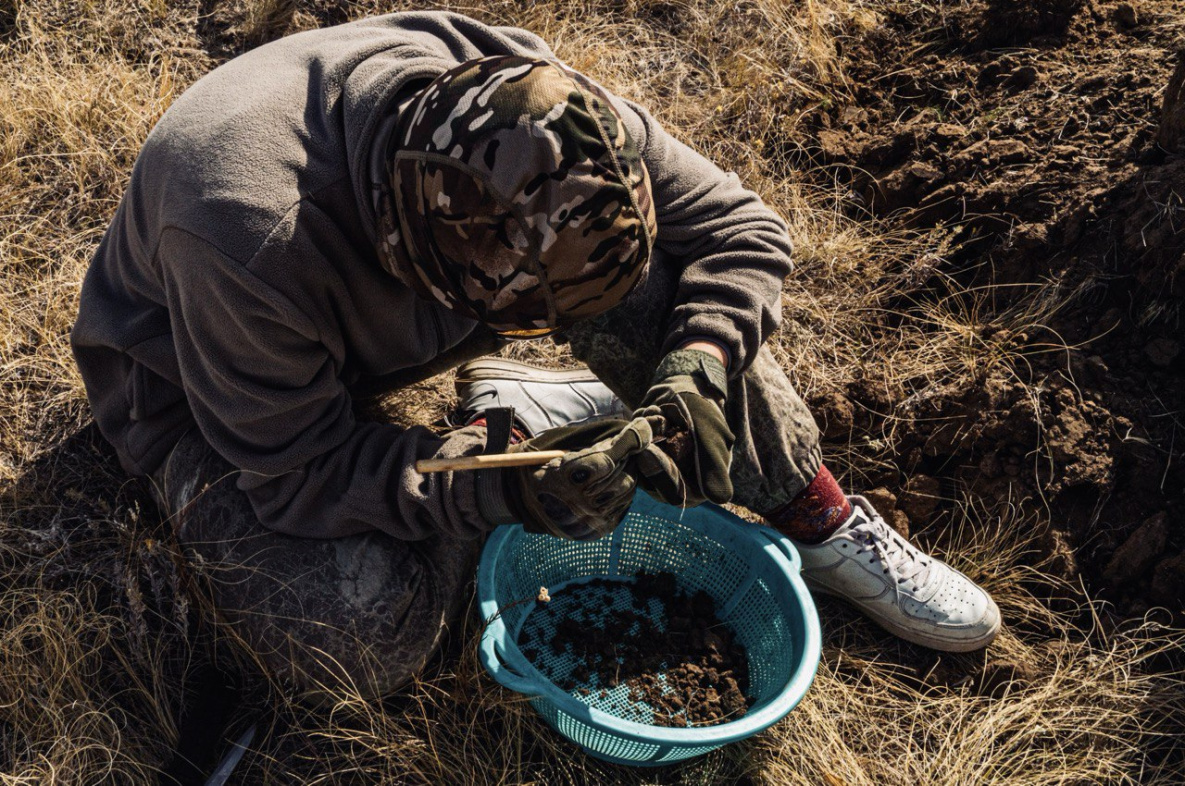 Останки красноармейцев были насыпаны как в отвалах, так и внутри раскопов, и их нужно было собрать. С целым скелетом получается работать быстрее, потому что в этом случае специалисты сразу понимают расположение тела, а значит, и предметов, которые могли находиться рядом с ним. При сильной же фрагментации нужно правильно собрать останки и при этом не перепутать между собой разных людей, так как в условиях боя они находились близко друг к другу.