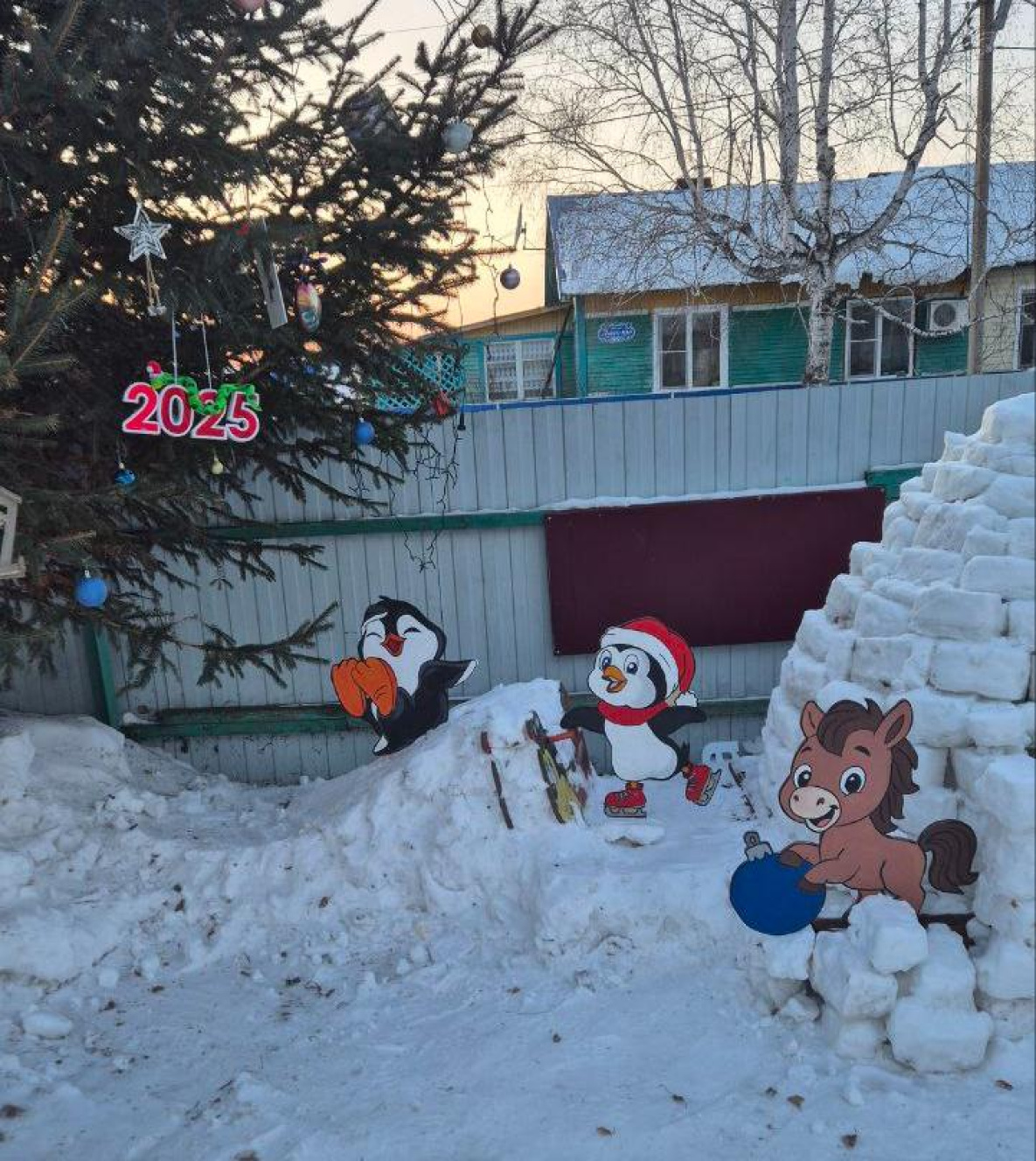 Теперь в ее дворе появилось место для игр с горками, качелями, фотозонами, причем и для соседских ребят тоже. Дети, кстати, также помогают в создании зимнего пространства. Например, как только выпал снег, начали морозить из него кирпичи для строительства крепости, которая позже модернизировалась в иглу.