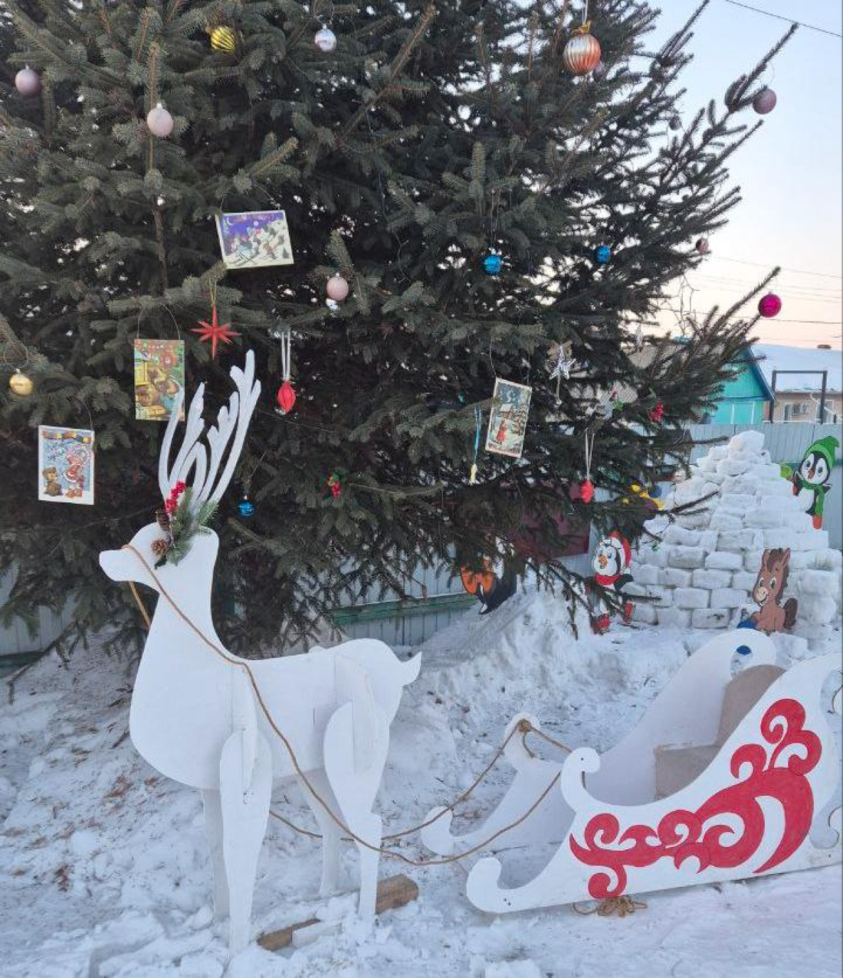 Однако есть в этом районе еще одна мастерица – Екатерина Герцен из села Павленково. С ее легкой руки на ее участке поселились полутораметровые олени, персонажи мультфильмов, символ года, снежные строения, на елке - советские открытки. Заниматься оформлением ей только в радость, поэтому все выходит складно и легко, плюс, она исполнитель художественно-оформительских работ, что тоже помогает в воплощении задумок.