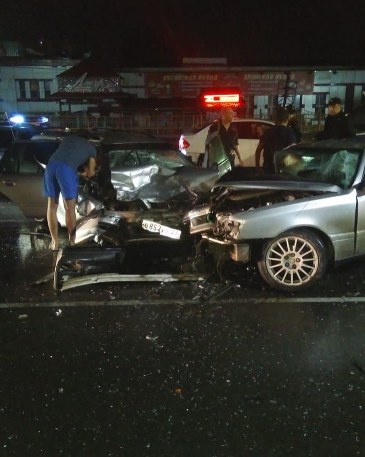 В ночь с воскресенья на понедельник экстренные службы выезжали на ДТП на улице Краснореченской краевого центра. Там в районе остановки «Мелькомбинат» на большой скорости столкнулись две иномарки.