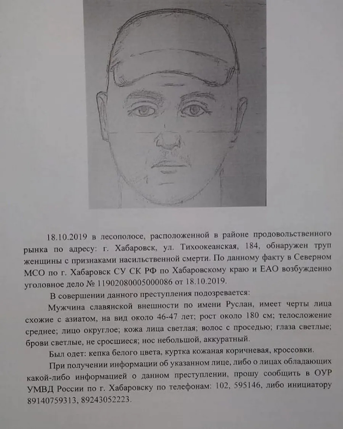 В Хабаровске распространяются ориентировки на подозреваемых в убийстве 40-летней Ольги Тимофеевой, тело которой было найдено на пустыре в районе Трехгорной, сообщает ИА «Хабаровский край сегодня».