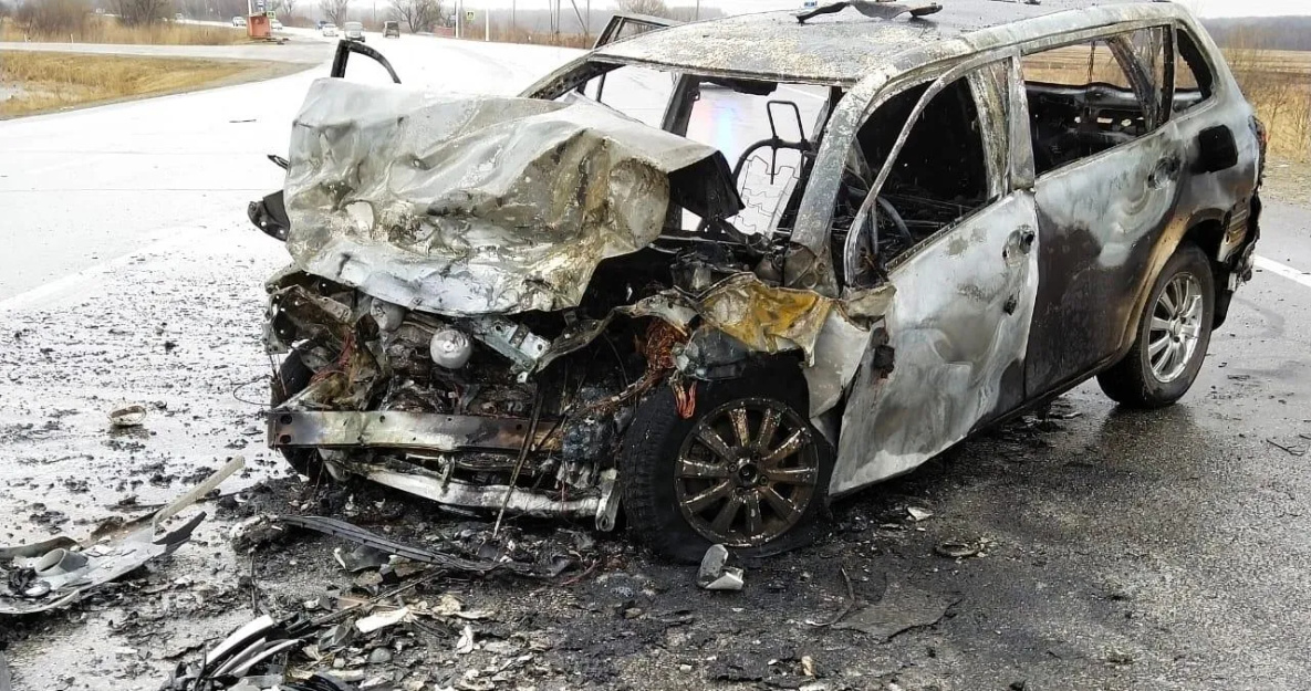 Страшное ДТП случилось утром в субботу, 17 апреля, в пригороде Хабаровска на Комсомольской трассе около поворота к селу Ровное. Как сообщает ИА «Хабаровский край сегодня», там в лобовую столкнулись седан и внедорожник. После чего первый автомобиль загорелся.