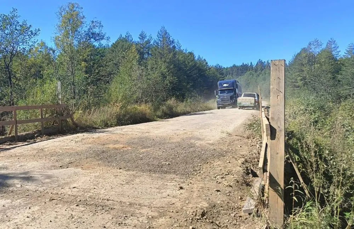 Это уже второй разрушенный грузовиками мост на автодороге Селихино – Николаевск за два месяца. Предыдущий, через реку Малые Курпунини, повредили 26 июля.