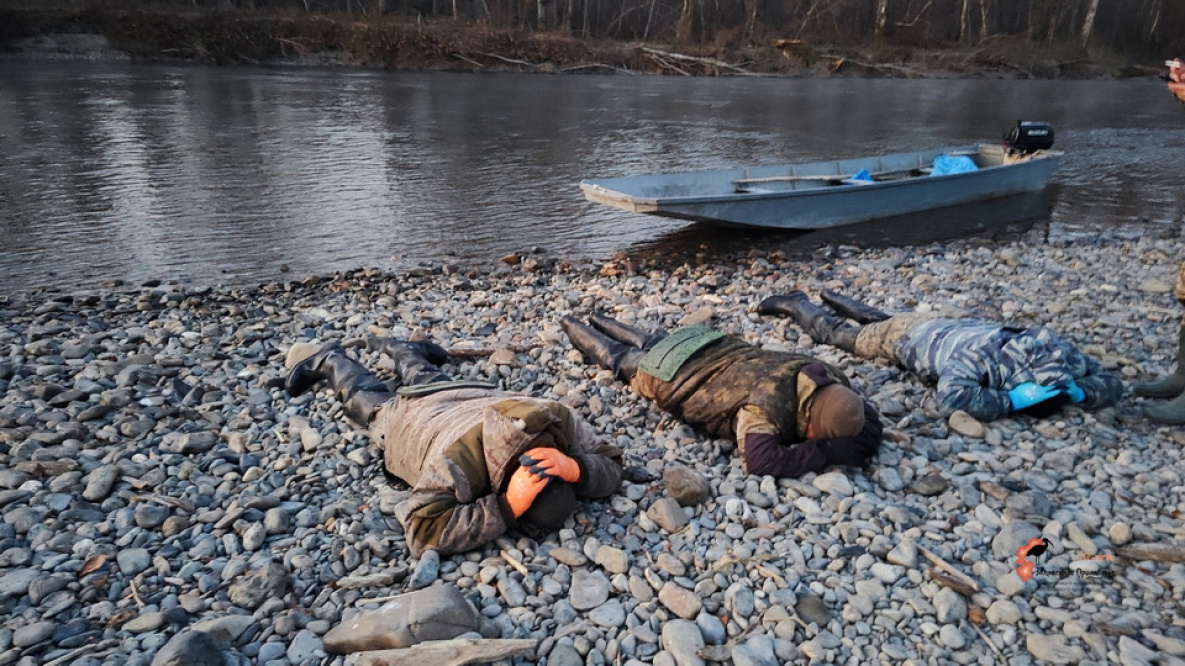 Ночью с воздуха браконьеров выслеживали квадрокоптером. Обнаружились свалки из сотен самок кеты – их потрошат и выбрасывают, оставляя себе икру. Затем квадрокоптер «увидел» и трех нарушителей, которые рыбачили сетью и добыли 11 кетин и ленка.