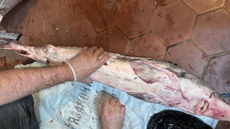 В двух гаражных боксах на лодочной станции в Амурске они обнаружили 85 фрагментов рыбы семейства осетровых, а также пять экземпляров рыбы этого же семейства. Общий вес изъятой рыбы - около 700 килограммов. Здесь же находилась рыболовная сеть, катер с подвесным лодочным мотором, а также контейнеры с черной икрой - всего 13 штук по 500 граммов. Общий вес деликатеса составил более 7 кг.