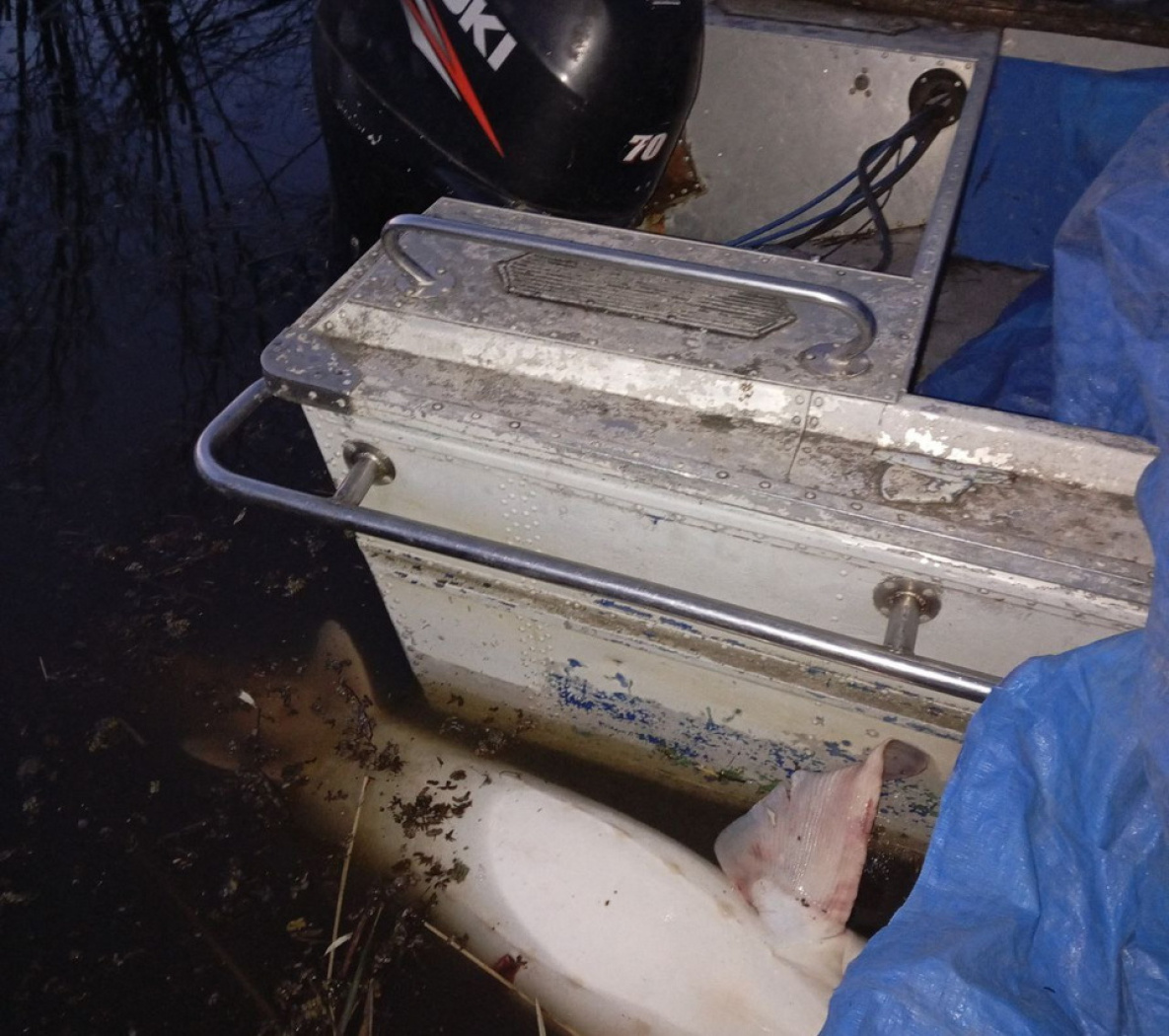 В Николаевском районе в поселке Архангельское задержаны два местных жителя, на маломерном судне сетью ловившие запрещенные для добычи амурского осетра и калугу, сообщает ИА «Хабаровский край сегодня».