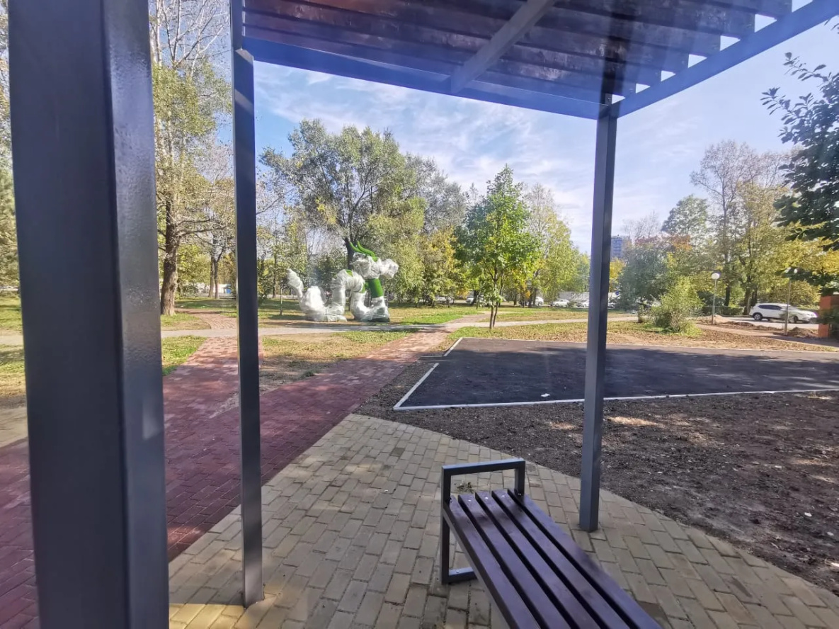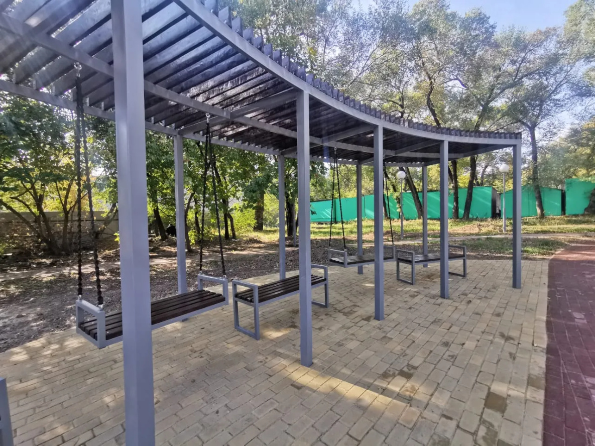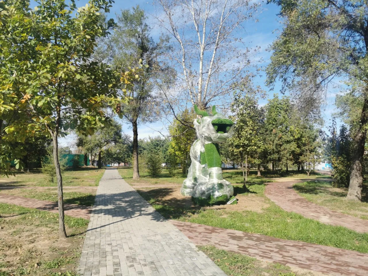 Также в сквере оборудовали пешеходные дорожки, установили качели и лавочки. Рядом уже стоит подаренная Китаем скульптурная композиция в авангардном стиле.