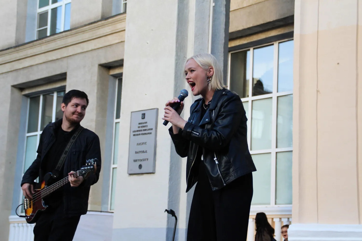 Ну и, разумеется, участников ждала общая клятва, гимн студентов на латинском языке «Гаудеамус», а также поздравление ректора ТОГУ Сергея Иванченко и деканов факультетов университета. С новым статусом со сцены студентов поздравила участница шоу «ПЕСНИ» на ТНТ, и финалистка «НОВОЙ ЗВЕЗДы-2021» VITA. Молодые слушатели хором подпевали и танцевали под исполненные певицей популярные хиты «Любимка», «Беги», «Покинула чат» и другие.