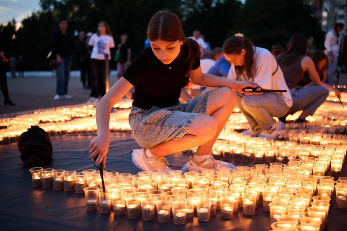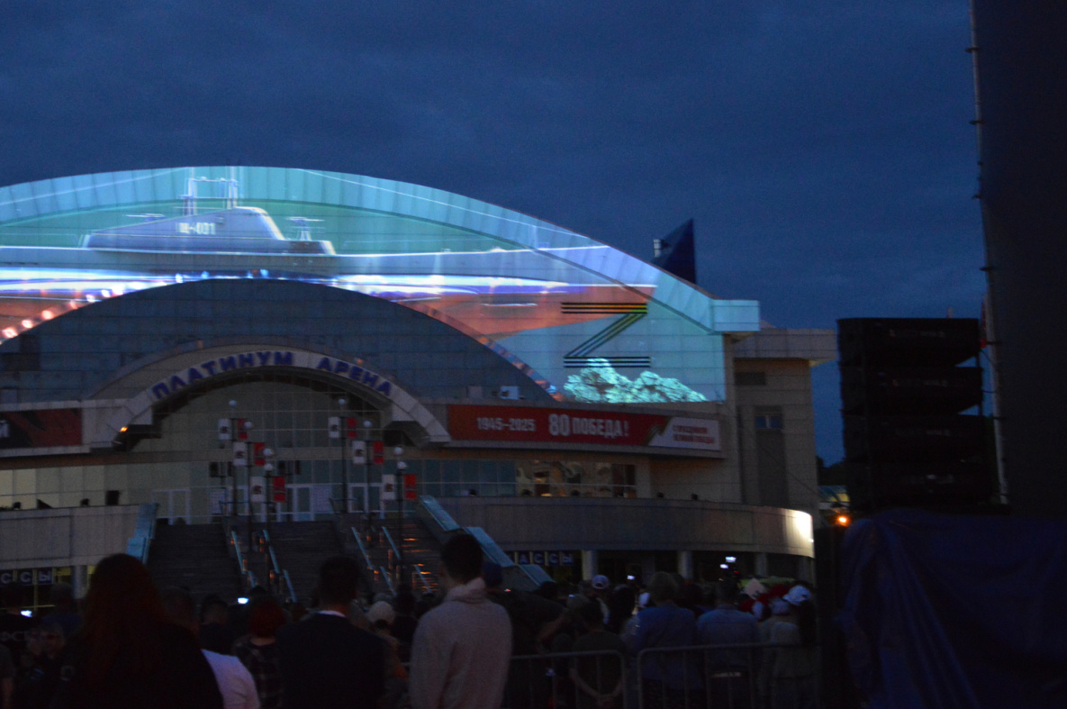 Памятную проекцию, сопровождающуюся звуком, на фасаде «Платинум Арены» посмотрели несколько тысяч человек. Изображения демонстрировали сцены войны, ставшие знаменитыми фотографии, а также лица героев, которые сделали всё для достижения Победы.
