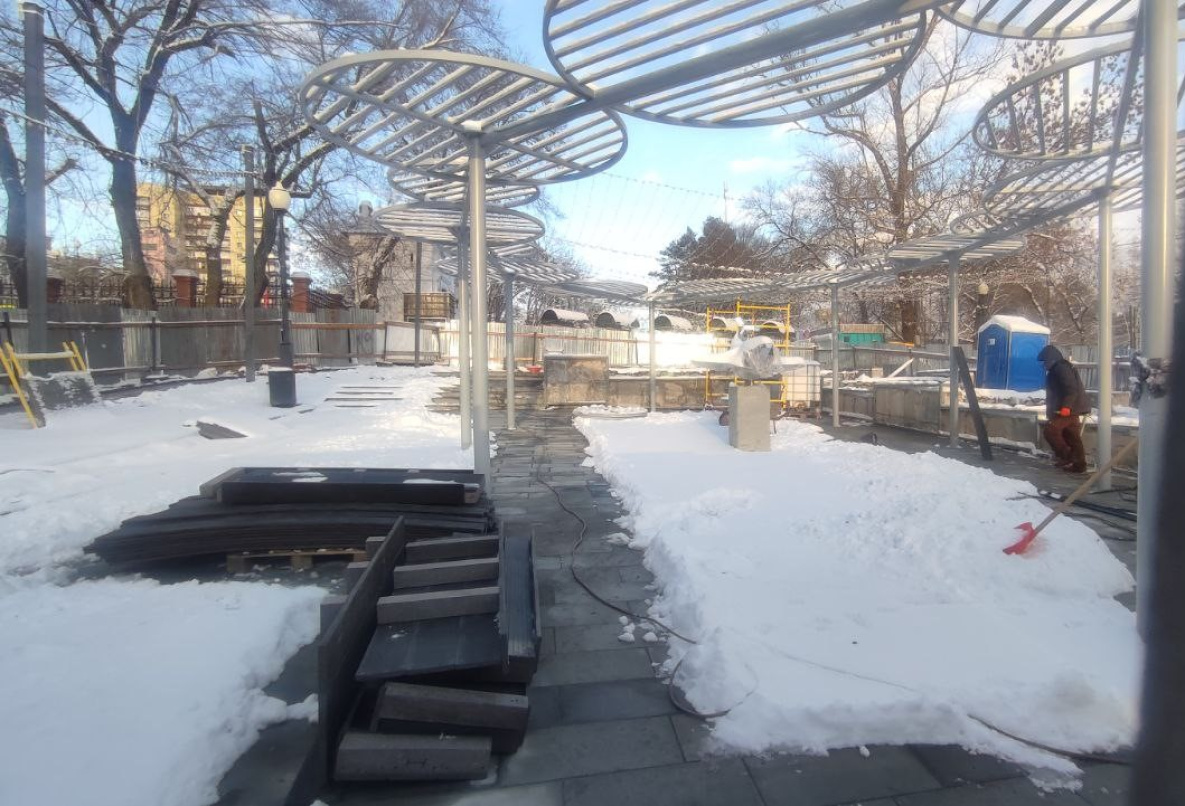 Комплекс возвели за счет средств спонсора, который выделил деньги на реконструкцию этой зоны в качестве подарка ко Дню основания Хабаровского края. С недавнего времени современная и удобная площадка открылась. Выполнена она в едином стиле, отражающий концепцию слогана «Хабаровский край - родина китов и самолетов».
