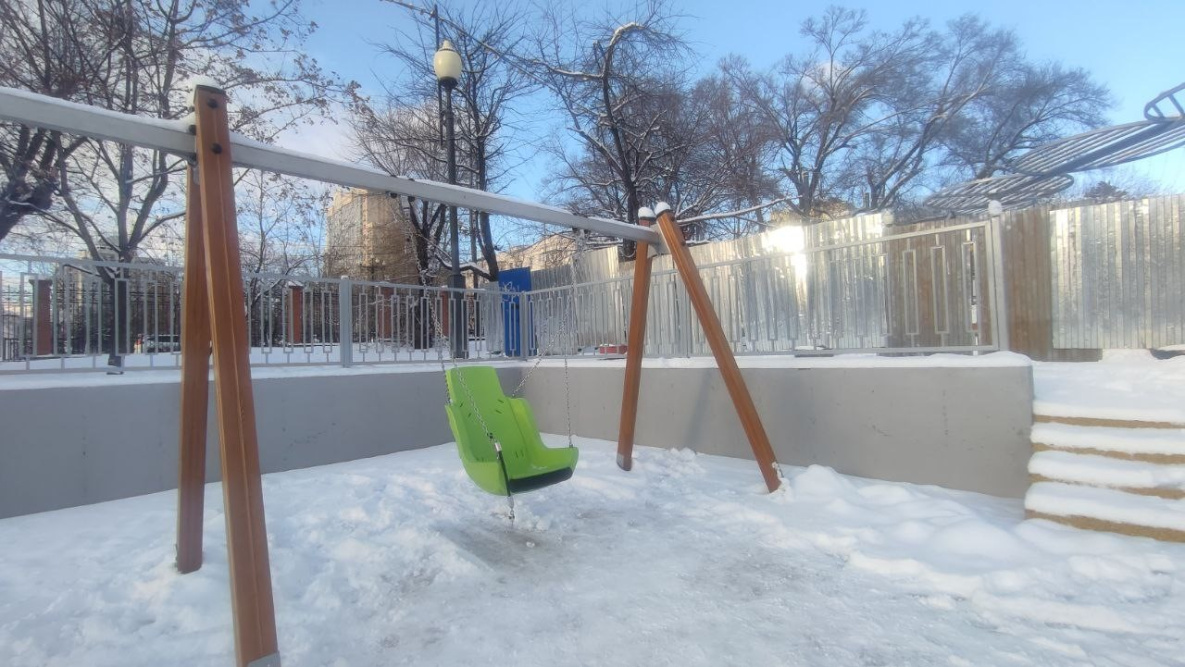 Юные хабаровчане исследуют новую площадку в парке «Динамо». Как напоминает ИА «Хабаровский край сегодня», современный городок появился здесь на месте старой игровой зоны, которую для капитального обновления огородили и демонтировали еще летом.