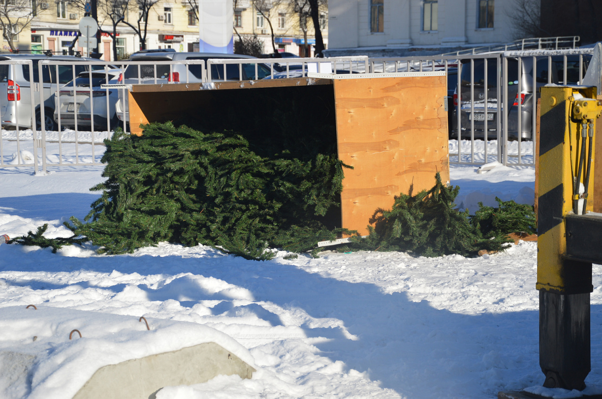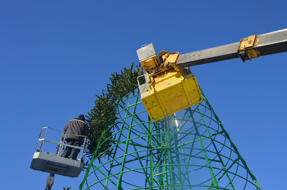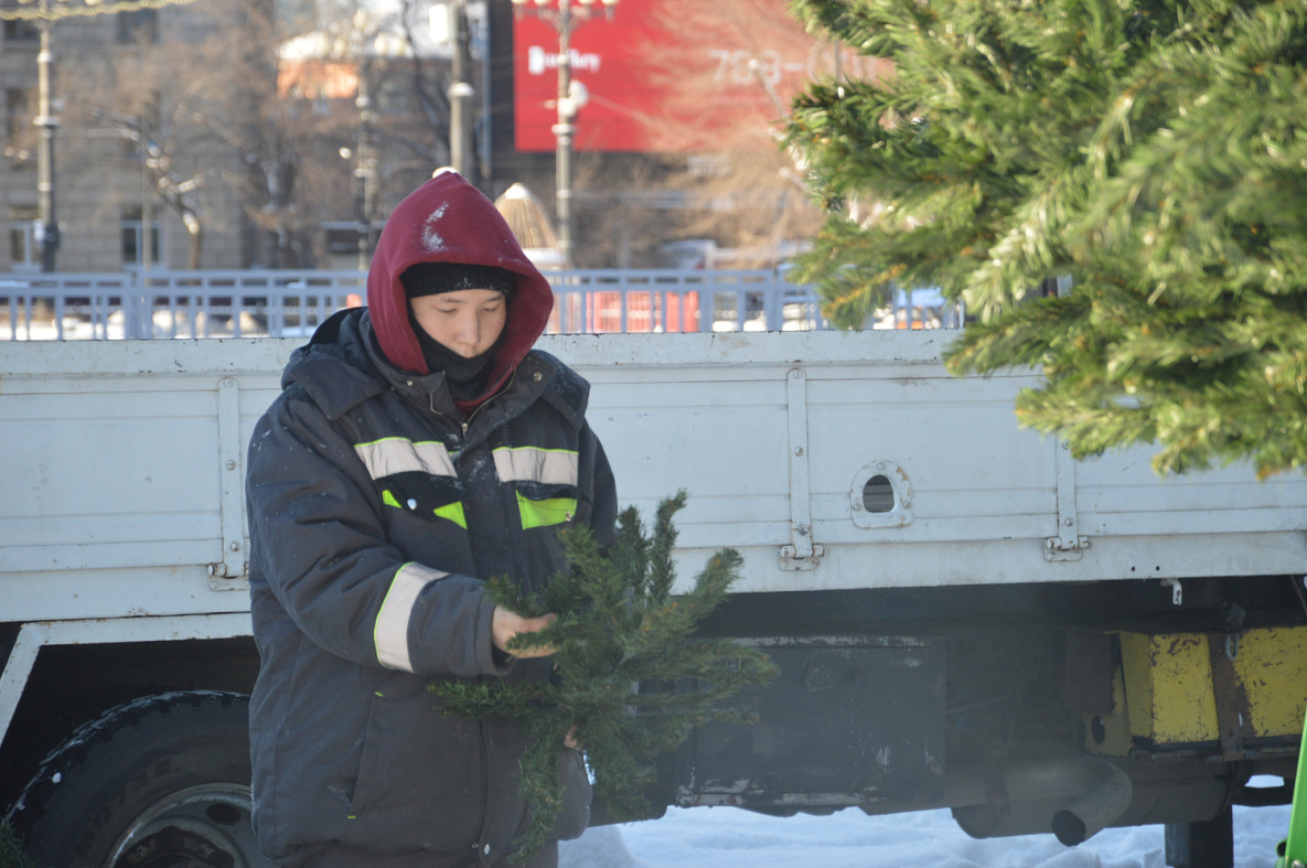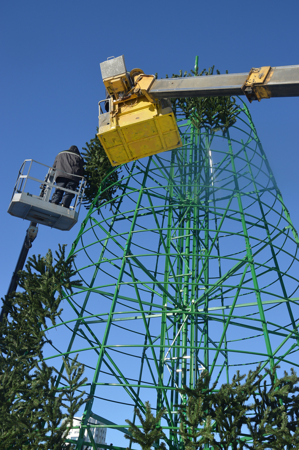 К наступающему Новому году начали постепенно украшать крупнейший город Дальнего Востока. Так, один из главных символов праздника уже установили на площади имени Ленина в Хабаровске – на монтаж металлического каркаса потребовалось несколько дней. Теперь будущей елке осталось добавить «пушистости». И, как сообщает ИА «Хабаровский край сегодня», специалисты как раз приступили к водружению колючих веточек на свои места.