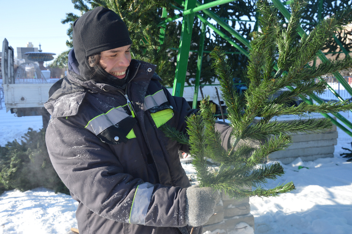 Однако сейчас бригада в начале пути, но попробуй перебери и распуши около 1,5 тысяч еловых веток, да еще и на морозе! Хотя сами создатели новогоднего настроения особого дискомфорта не ощущают. Говорят, и одежда теплая, да и погреться всегда можно. А вот в снежную погоду, которая была на днях, работать, напротив, сложнее – когда в глазах рябят снежинки, ударяясь в лицо с холодным ветром, труднее вкручивать конструкцию.