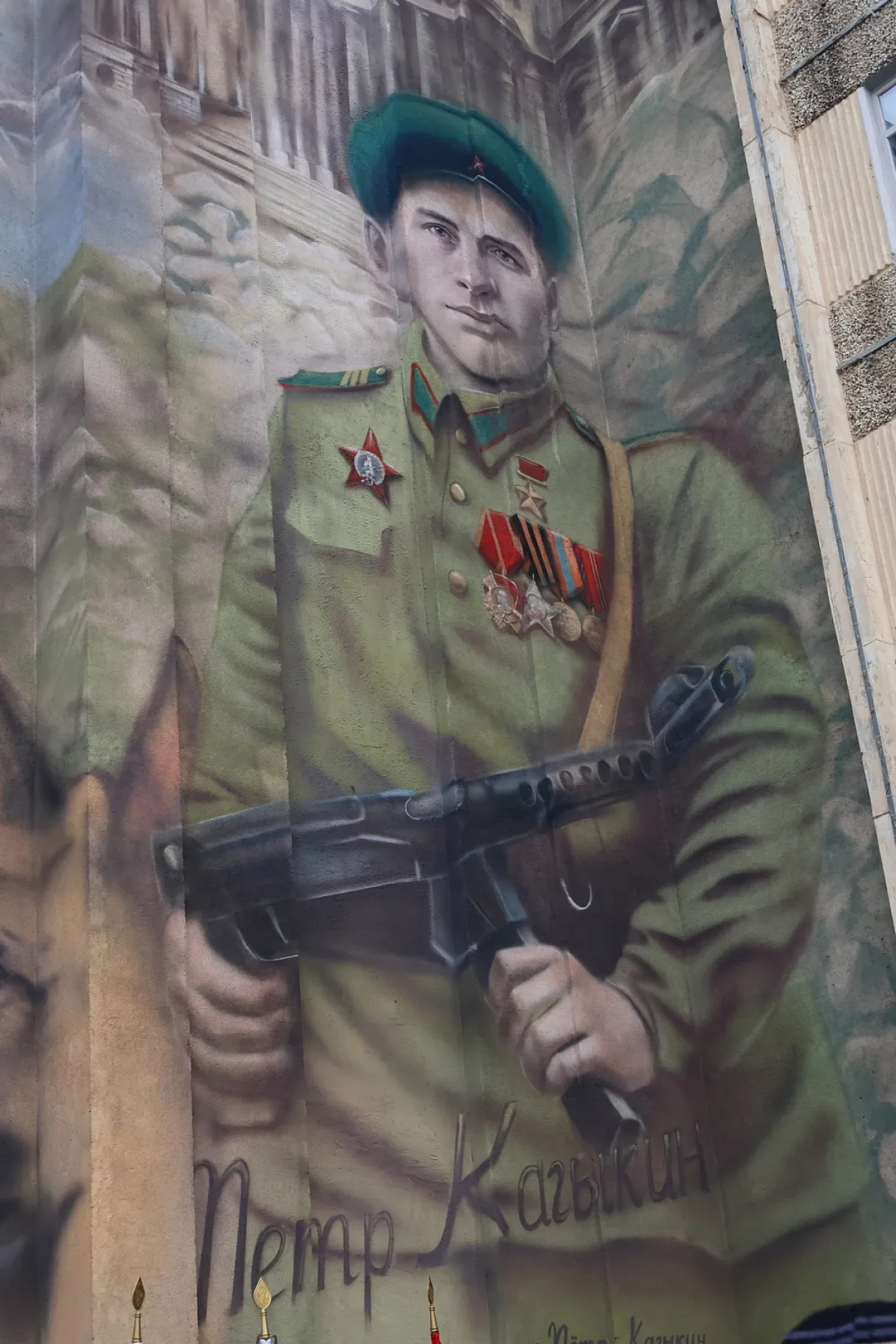 «Муралы Победы» – проект Союза патриотов Отечества. В Год 80-летия Победы во Второй мировой войне изображения Защитников Отечества появляются на зданиях в разных городах России. В Хабаровске Василий Шершон уже изобразил Маршала Победы Александра Василевского. Ко Дню Победы в краевой столице должны появиться еще два мурала, посвященных Маршалам Советского Союза Георгию Жукову и Константину Рокоссовскому.