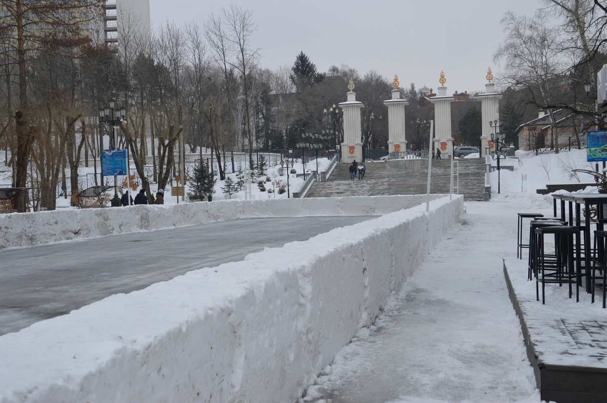 самым большим бесплатным открытым ледовым пространством на Дальнем Востоке. Его площадь составляет почти 7 тысяч квадратных метров. В этом году ледовую поверхность будут создавать в 11 раз.