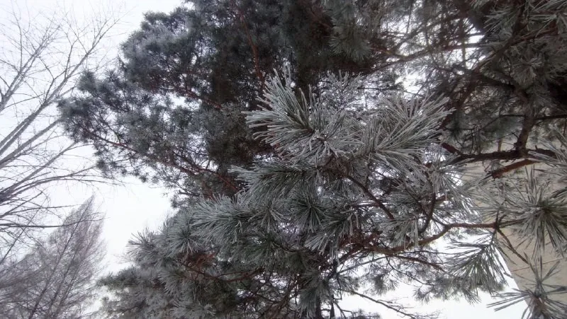 Деревья и кустарники предстали хабаровчанам сегодня утром в белых кружевных нарядах. Некоторые рассматривали природное явление набегу, другие – останавливались, чтобы запечатлеть отложение изморози. Красивая картина поздней осени попала и в объектив корреспондента ИА «Хабаровский край сегодня».