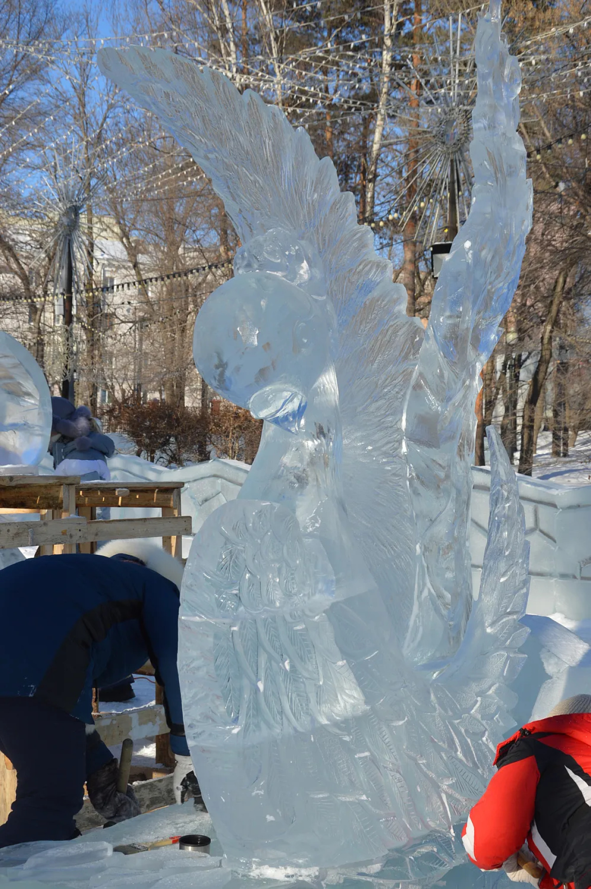 В этом году темой гостей и жителей города на аллее парка встретят сказочные герои изо льда. Частично здесь уже прослеживаются образы жар-птицы и птицы-счастья, гнома, змея Горыныча. Несмотря на мороз, мастера трудятся не покладая инструмента – говорят, нужно успеть за последние конкурсные часы воплотить задумку. Подведение итогов состоится сегодня, 23 декабря.