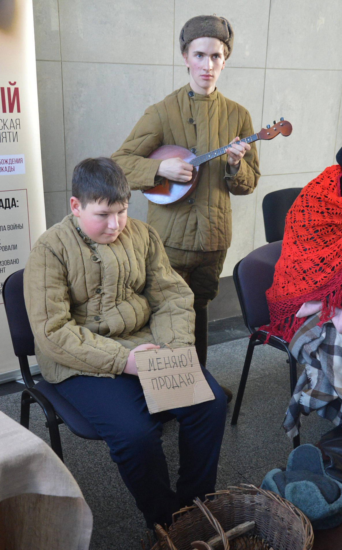 Однако волонтеры не только раздавали памятки о событиях блокады, ленточки и кусочки блокадного хлеба, они также воссоздали моменты тех сложных лет.