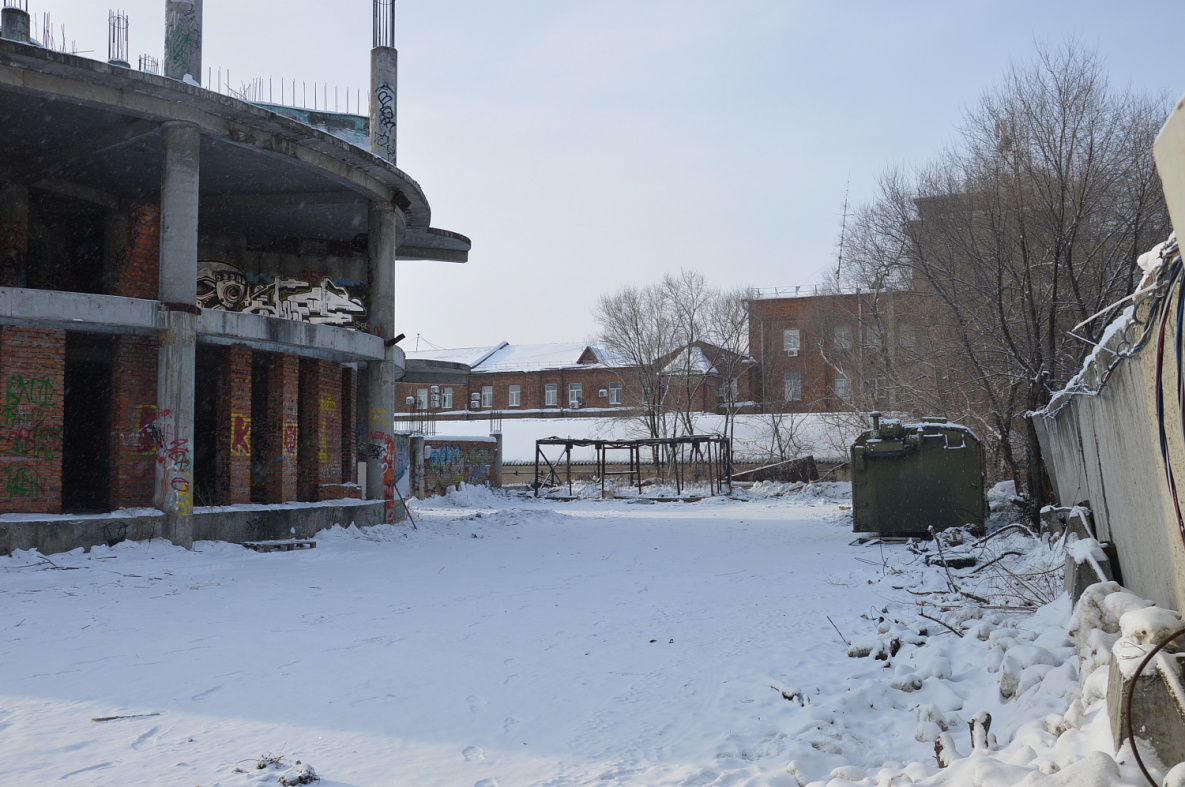 Остатки бывших цехов Хабаровского масложиркомбината – еще одна известная городская «заброшка». Когда производство сократилось до сравнительно небольших площадей, пустующие помещения стали приходить в запустенье, а ныне и вовсе представляли собой аварийные объекты.