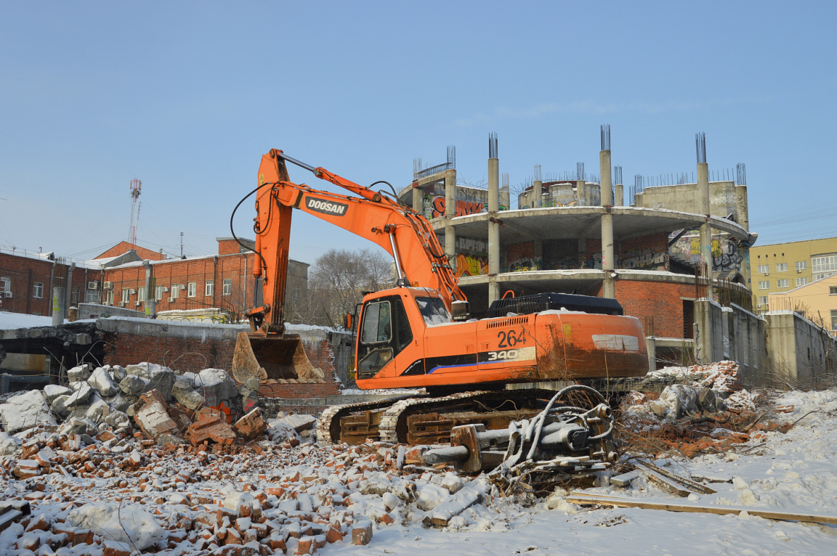 Опасных «заброшек» в Хабаровске становится меньше. Как сообщает ИА «Хабаровский край сегодня», помимо бараков в городе приступили к сносу известного долгостроя по улице Шеронова, а также давно пустующего здания завода МЖК.