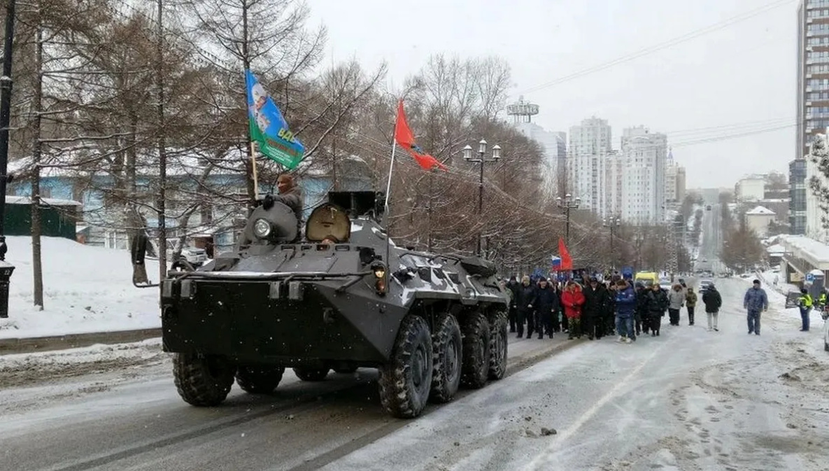 В День вывода ограниченного контингента советских войск из Афганистана в Хабаровске прошли торжественное мероприятие, шествие и возложения цветов к памятникам воинам, погибшим в локальных военных конфликтах, сообщает ИА «Хабаровский край сегодня».