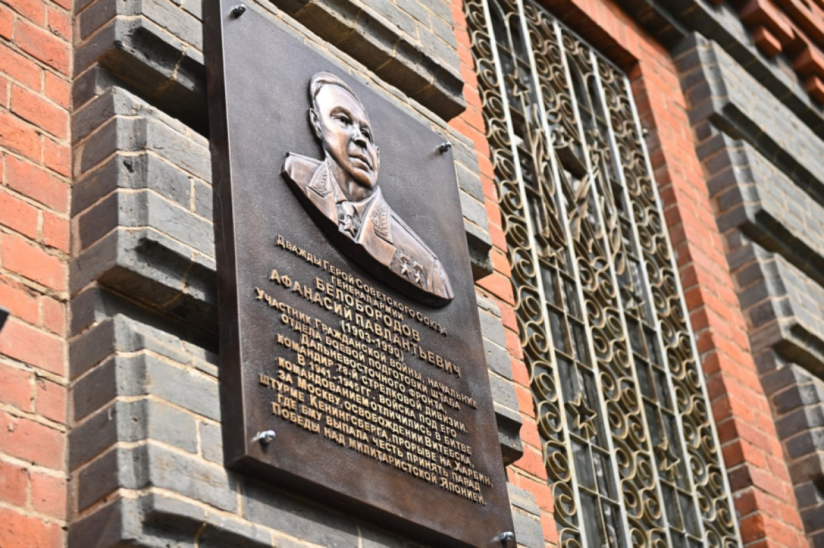 Мемориальная доска дважды Герою Советского Союза, генералу армии Афанасию Белобородову открыта на здании музея истории Восточного военного округа. Афанасий Павлантьевич — легендарный командир 78-й стрелковой дивизии. За героизм и мужество, проявленные при защите Москвы, она получила почётное наименование 9-й гвардейской.