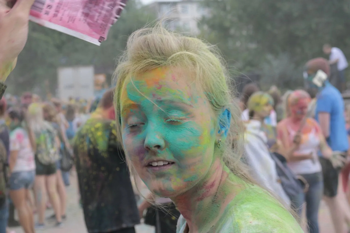 Кстати, краски, утверждают организаторы, абсолютно безвредны. Они сделаны из кукурузного крахмала и пищевого красителя. Даже если попадут в глаза или рот - никаких негативных последствий не будет. И еще один плюс - краситель очень легко смывается даже холодной водой, не оставляя никаких следов ни на коже, ни на одежде.