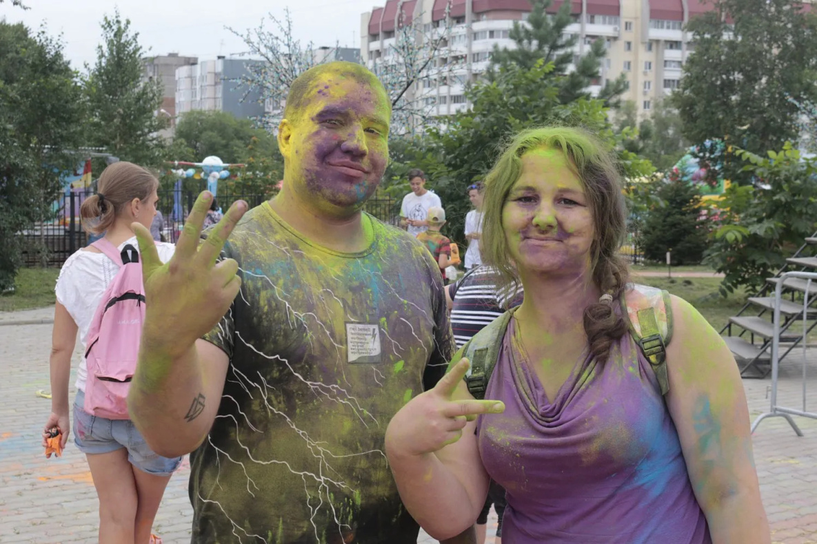 Цветное безумие началось ровно в пять часов вечером в пятницу. На площади перед кинотеатром «Хабаровск» собрались и стар и млад. Самому старшему участнику было явно за пятьдесят, самому молодому не исполнилось и двух лет.