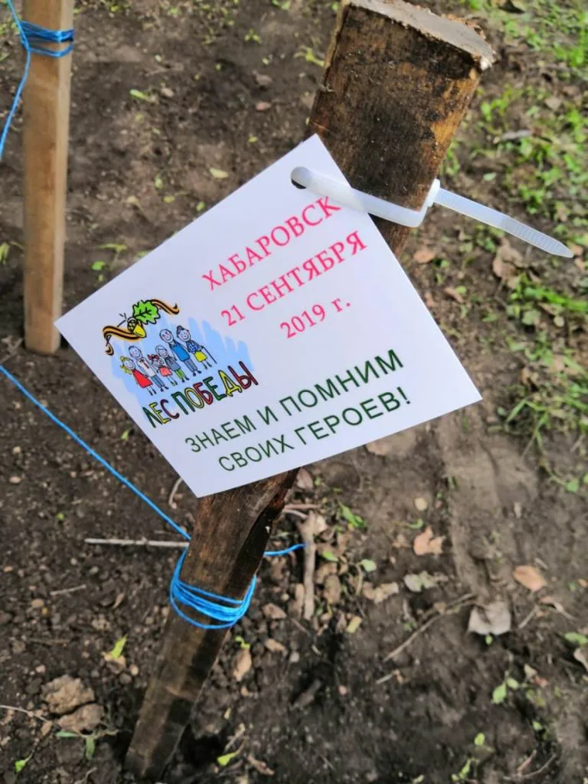 Кстати, перед тем как посадить саженцы, для участников организовали мастер-класс по древонасаждению. А затем на каждый из 50 высаженных деревьев прикрепили памятную табличку с именами родных, прошедших войну.
