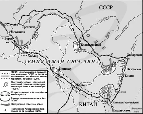 Молодой маршал, едва став правителем, организовал серию провокаций против советских служащих КВЖД (а это 13 тысяч человек плюс члены их семей) и вылазки на советско-китайской границе. А в 1929 году китайцы вместе мечтающими о реванше харбинскими белоэмигрантами захватили советское диппредставительство в Харбине, пошли незаконные аресты советских граждан.