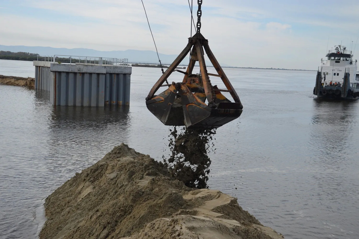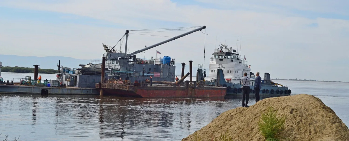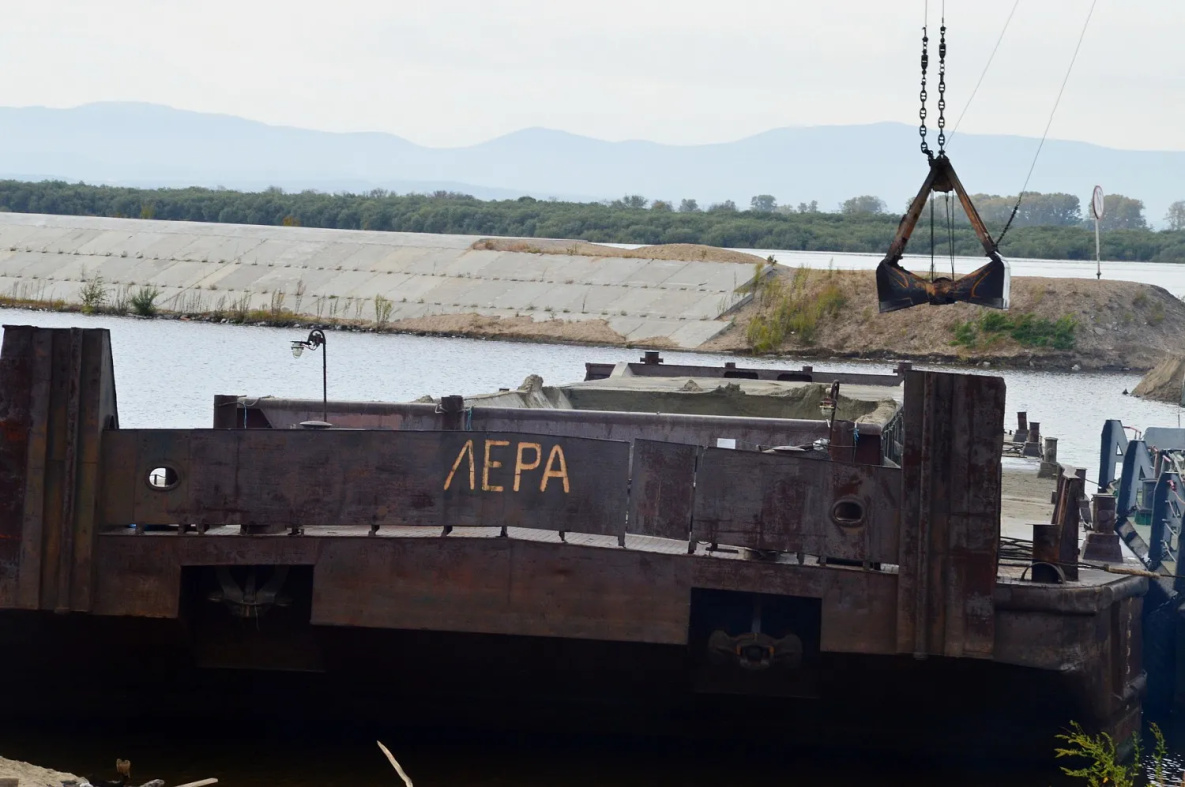 Песок в тело дамбы укладывают судовым краном со старенькой баржи с красивым именем «Лера». Для ускорения процесса решено задействовать также специальный земснаряд, который будет заливать перешеек пульпой – смесью песка и воды. Приблизительная смета работ – около 10 миллионов рублей.