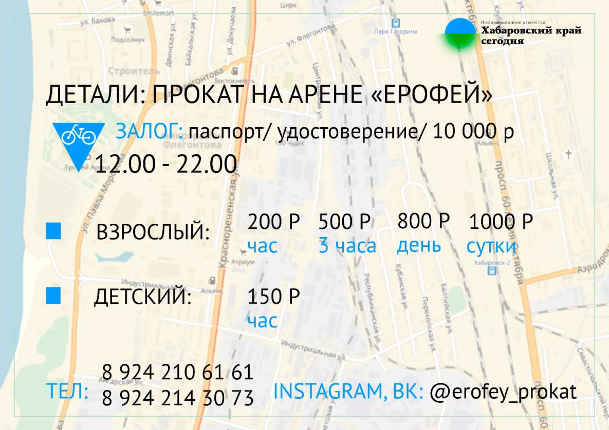 Пункт для многих очень удобен, потому что находится в центре излюбленного места катания хабаровчан. К тому же, взять напрокат можно не только велосипед.