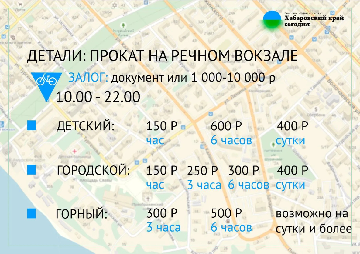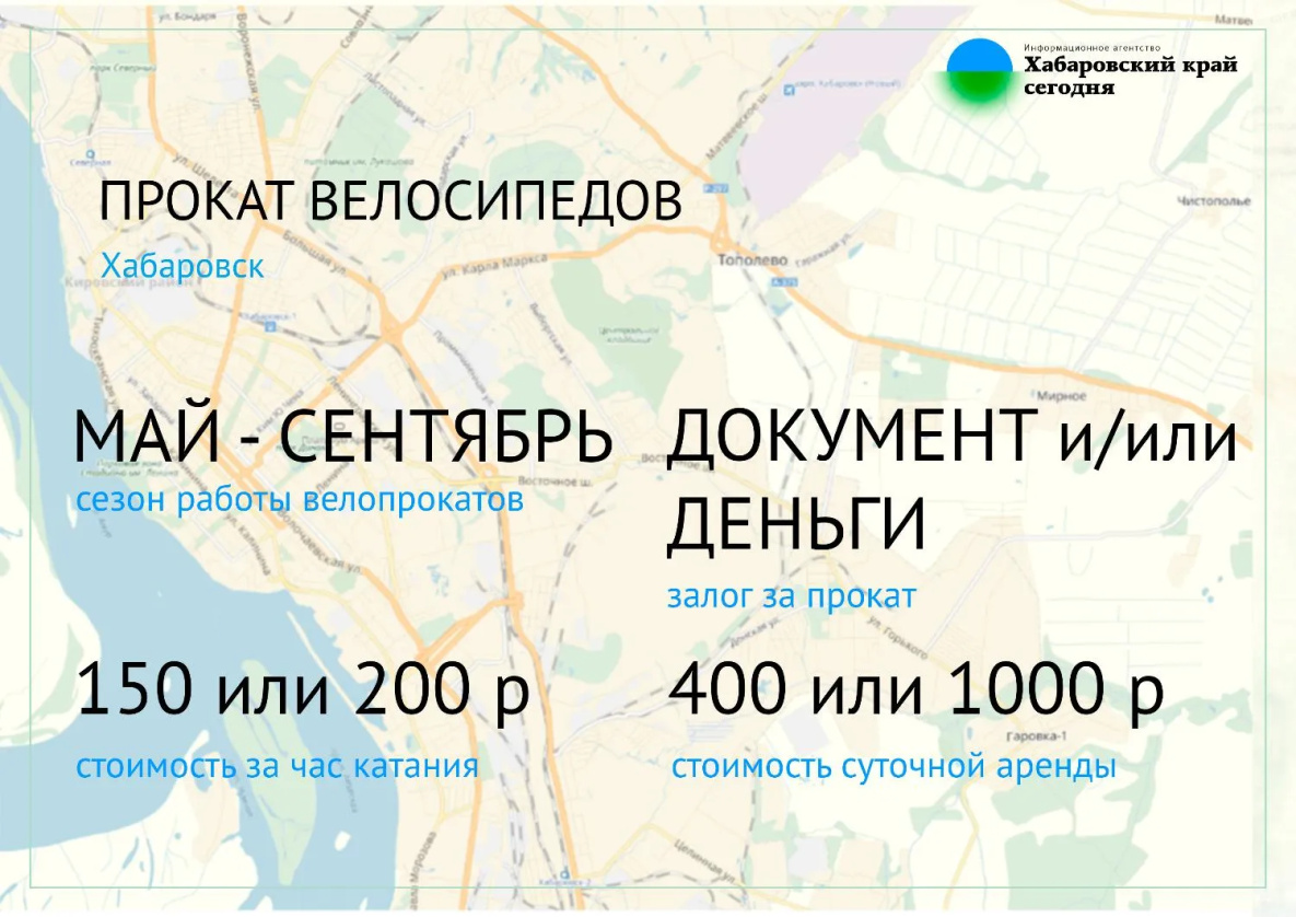 Работают пункты проката в Хабаровске с апреля-мая по сентябрь.