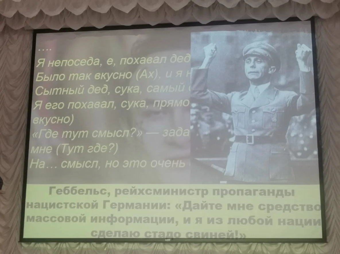 Лектор отметил, что необходимо на государственном уровне ввести действующие меры: нравственную цензуру или социокультурные фильтры. Ребенка нельзя оградить от всего того, что несет вред. Но зло должно идентифицироваться как зло - требуется верно закладывать ценностные установки.Он рекомендовал присутствующим использовать конкретные технологии работы с различными аудиториями, стараясь доносить информацию о важности сохранения нравственных ценностей в современной среде. Все это иллюстрировалось на конкретных примерах. Допустим, он объяснил, почему слушать Оксюморона опаснее, чем Моргенштерна, отчего сожительство вне брака – показатель неравноправия полов и многое другое.